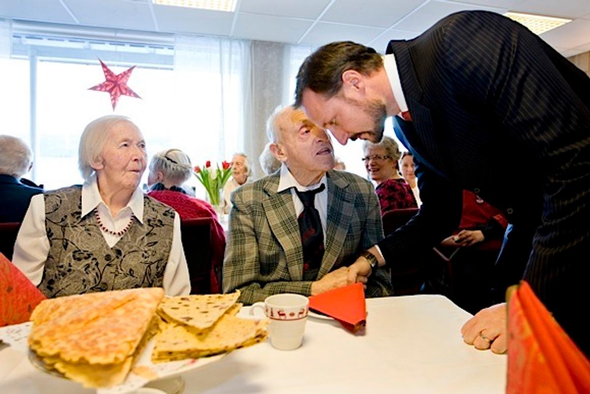 Deres Kongelige Høyheter Kronprinsen og Kronprinsessen var på førjulsbesøk hos beboerne på Geilotun alders- og sjukeheim mandag.