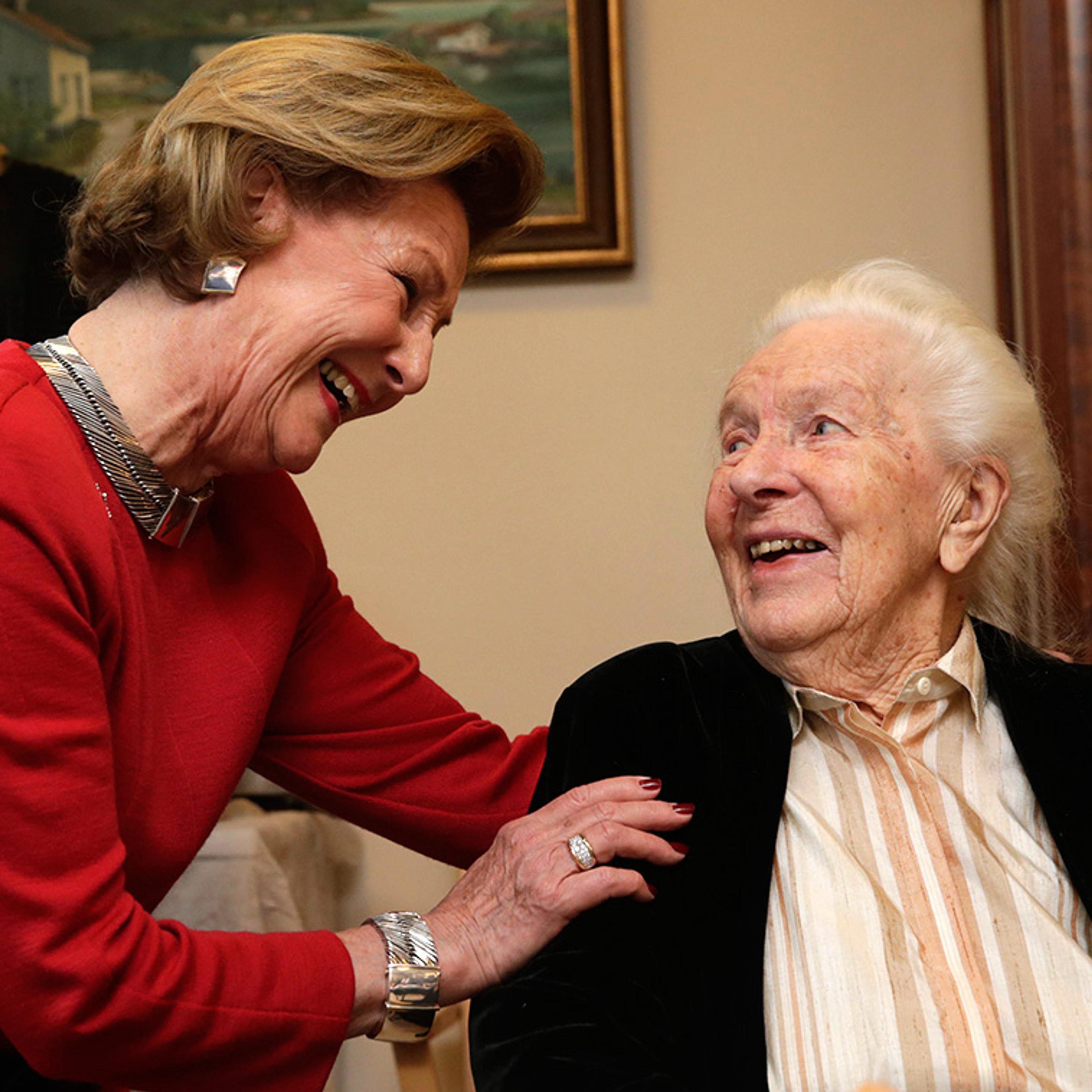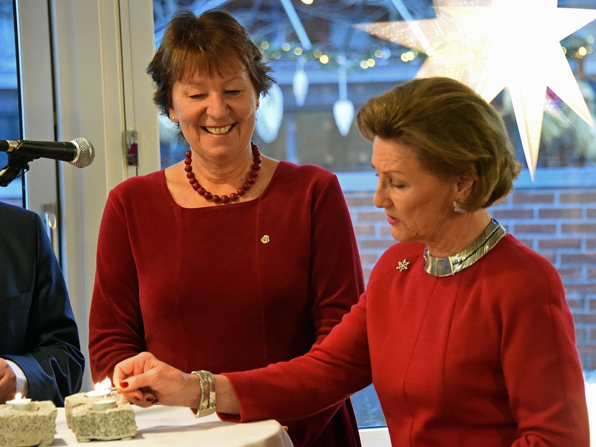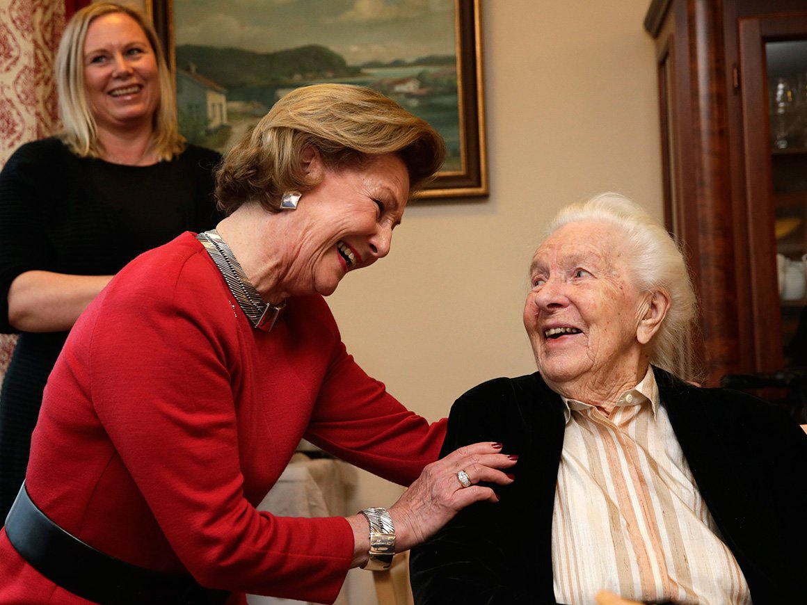 Dronning Sonja fikk møte både beboere og ansatte i dag. Det ble anledning til en god samtale over bordene, og Dronningen tok også del i et kulturprogram med lystenning i Kultursalen. Det ligger mye tradisjon og byhistorie rett utenfor dørstokken på Sofienberghjemmet, og det legges stor vekt på kulturarbeidet ved sykehjemmet.