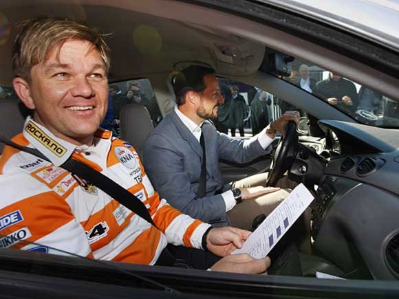 H.K.H. Kronprinsen køyrde første etappe av EVS Viking rally mellom Oslo og Drammen i dag. I passasjersetet sat rallykøyrar Henning Solberg. Deltakarane i dette rallyet er dei første bilane som køyrer heile den såkalla Hydrogenvegen.