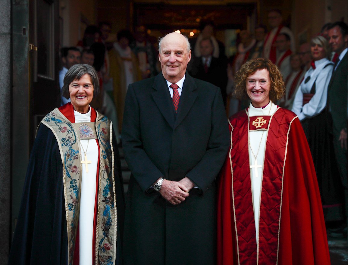 Etter gudstenesta i Oslo domkyrkje var Kong Harald til stades ved ein lunsj i Fanehallen på Akershus festning til ære for den nye biskopen.