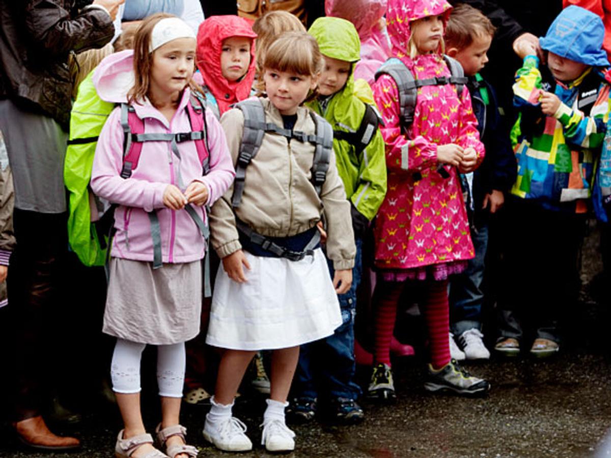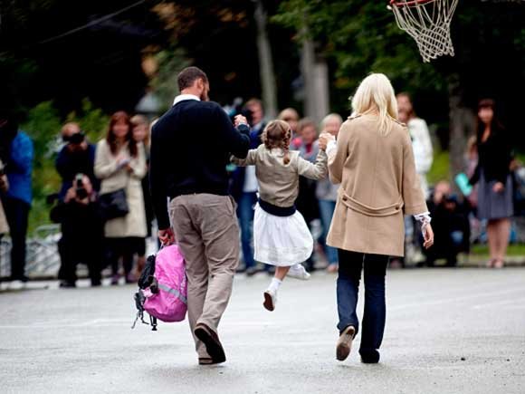 Hennes Kongelige Høyhet Prinsesse Ingrid Alexandra begynte på Jansløkka barneskole i Asker i dag. Både foreldre og besteforeldre fulgte Prinsessen på hennes første skoledag.