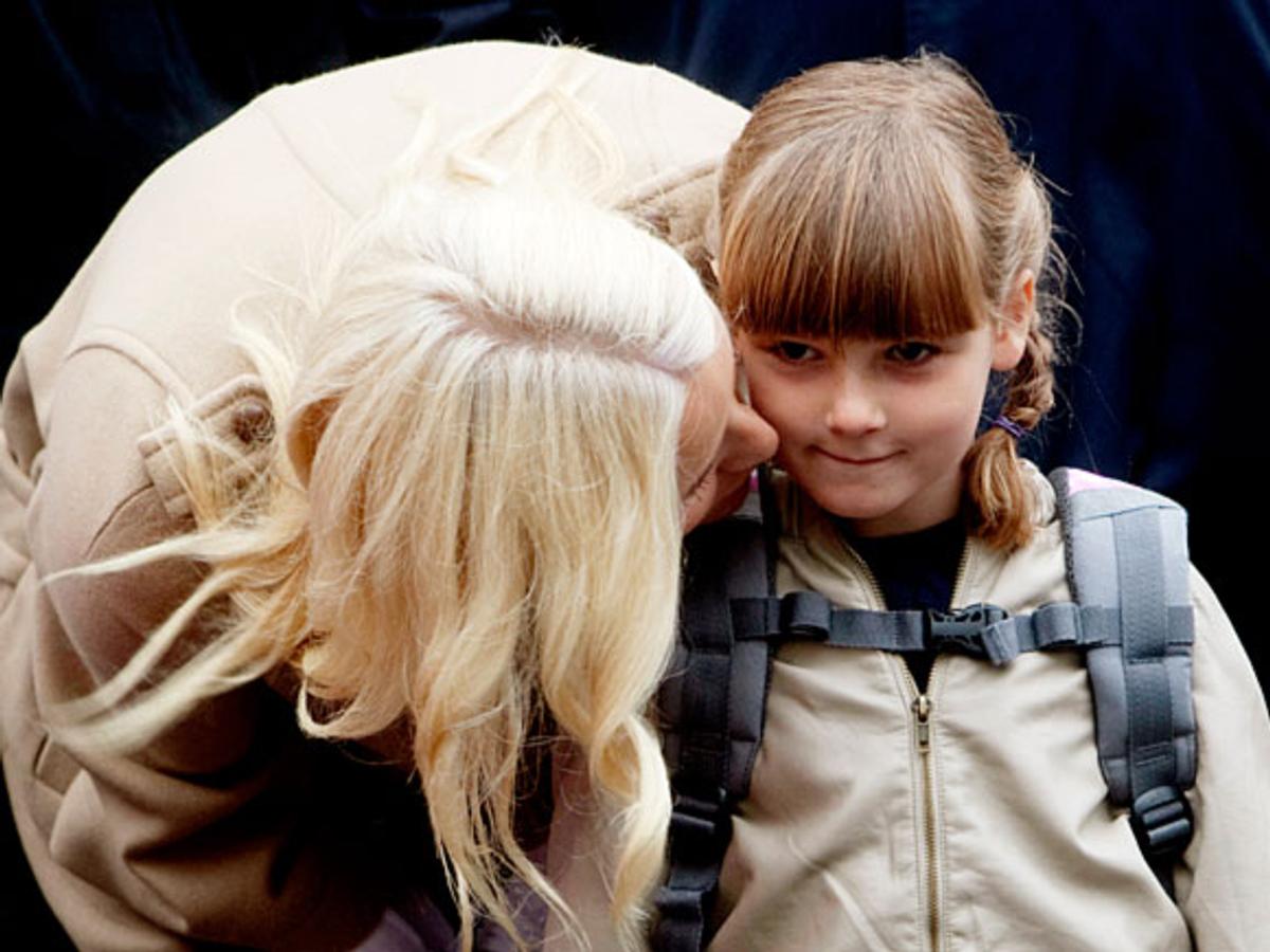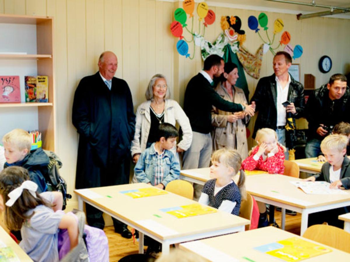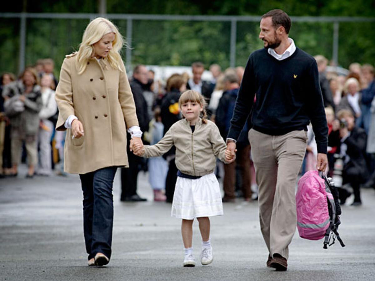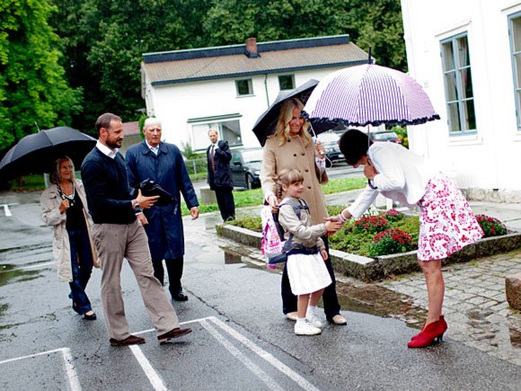 Kong Harald, Kronprins Haakon, Kronprinsesse Mette-Marit og Kronprinsessens mor, Marit Tjessem, fulgte Prinsessen til Jansløkka. Skolen er blant Askers eldste, og ligger like i nærheten av Skaugum.