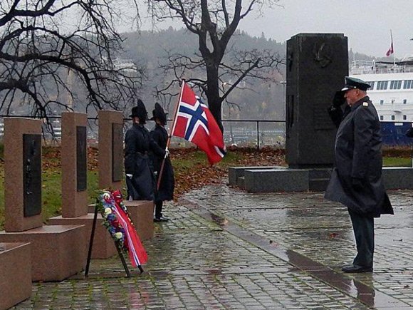 Hans Majestet Kongen var søndag formiddag til stede ved Forsvarets markering i minnelunden på Akershus Festning i Oslo. Under seremonien la Kongen ned krans ved minnesmerket over de falne.