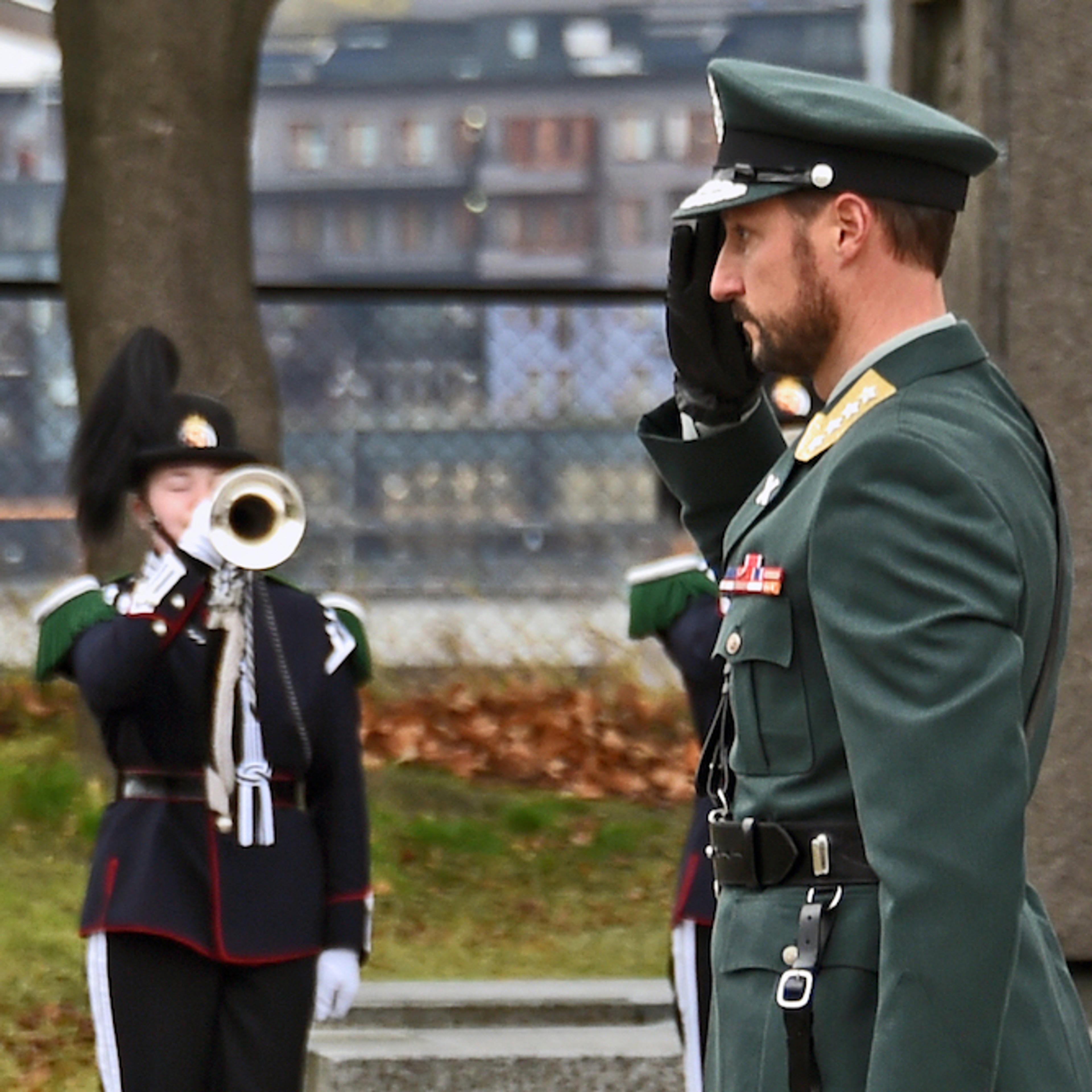 Hans Kongelige Høyhet Kronprinsregenten la ned krans i minnelunden på Akershus Festning da Forsvarets minnedag ble markert i formiddag.