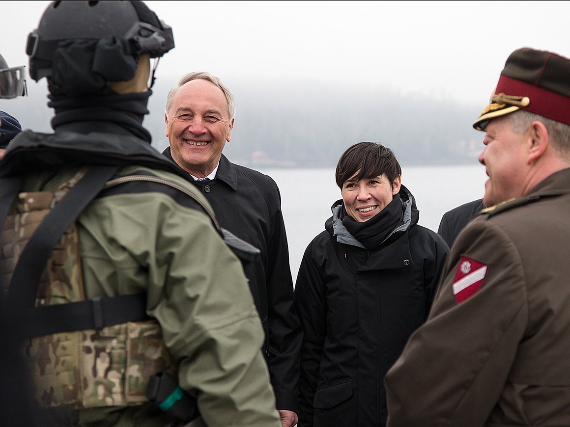 Forsvarsminister Ine Marie Eriksen Søreide og forsvarssjef Haakon Bruun-Hanssen var vertskap for manøveren, der Kongeparet og Presidenten ble ytterligere briefet om sikkerhets- og forsvarssamarbeidet mellom våre to land.