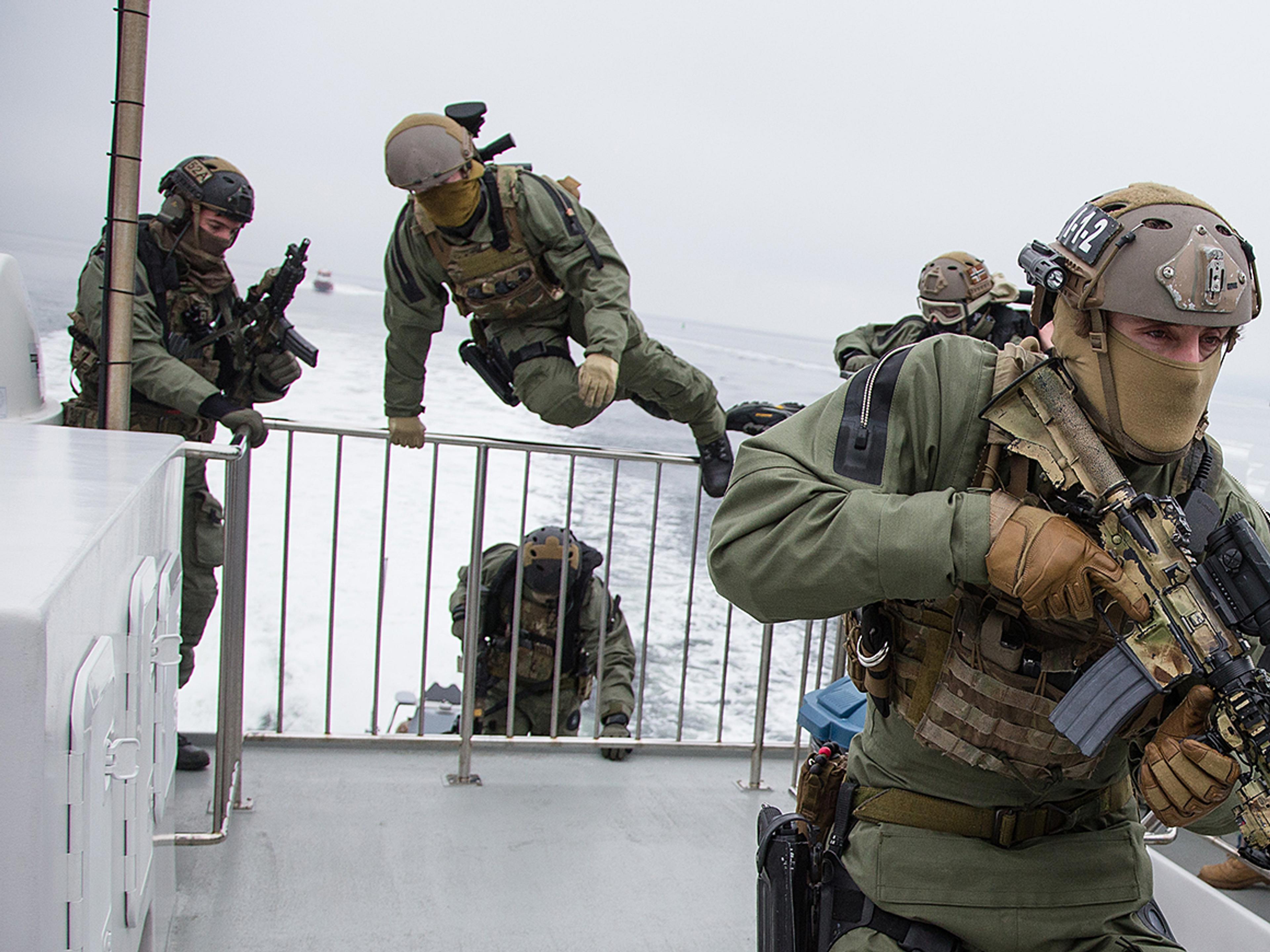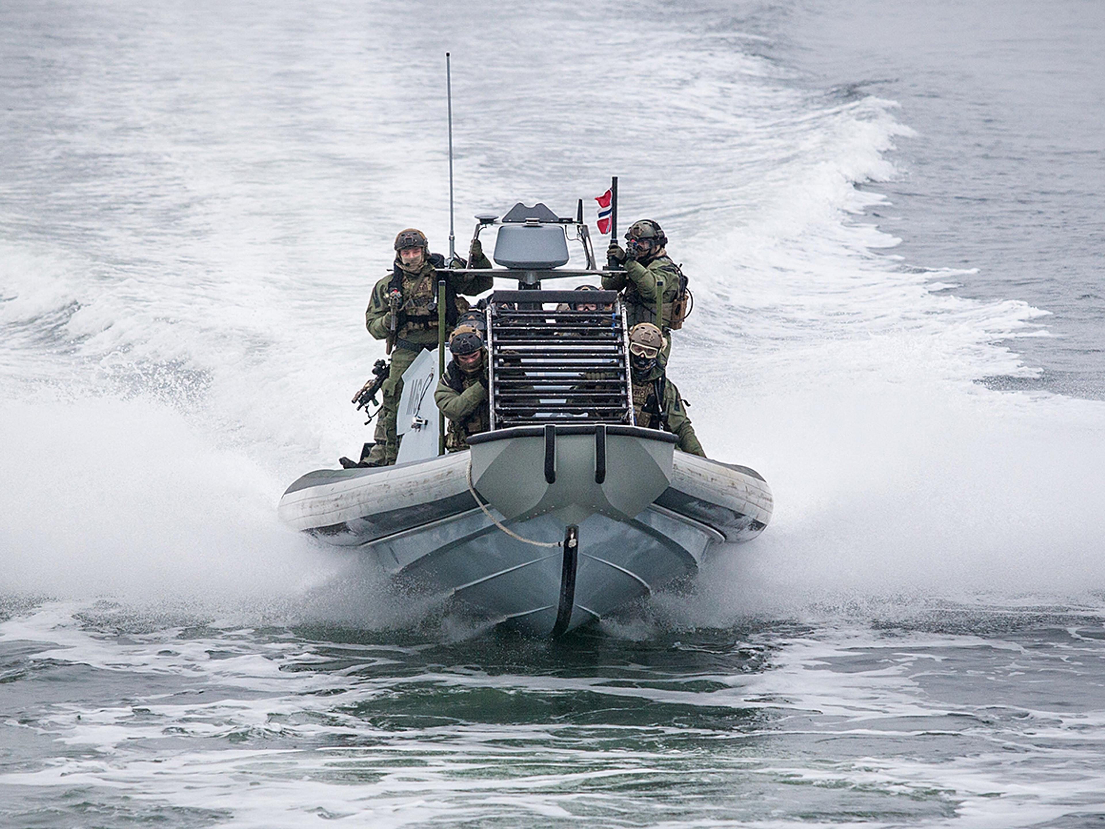 I formiddag ledsaget Kongeparet President Bērziņš ut på Oslofjorden om bord i MS Baronen. Midtfjords entret norske marinejegere og soldater fra Forsvarets spesialkommando hurtigbåten, og demonstrerte hvordan de tar kontroll over et fartøy.