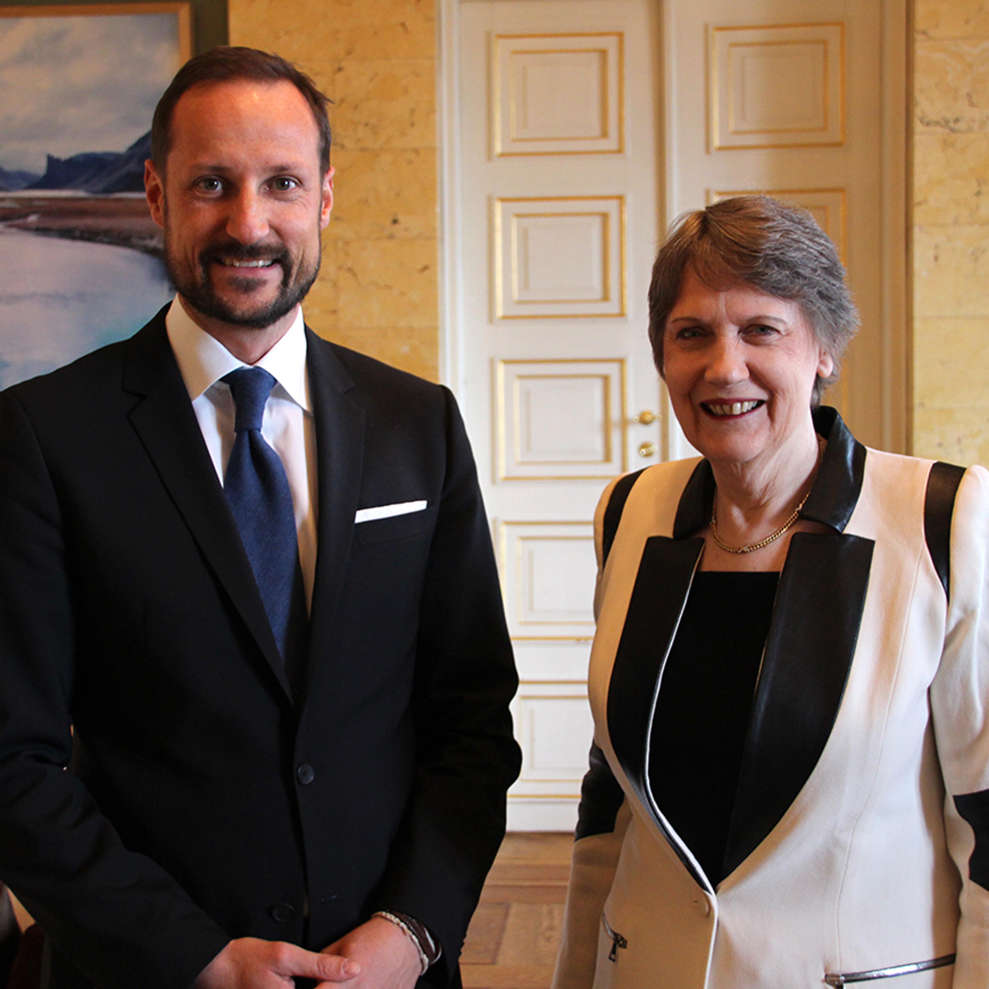 UNDPs leder Helen Clark uttaler at Kronprinsen, grunnet hans sterke engasjement for globale utviklingsspørsmål, vil være en overbevisende forkjemper for UNDPs arbeid for å utrydde fattigdom.