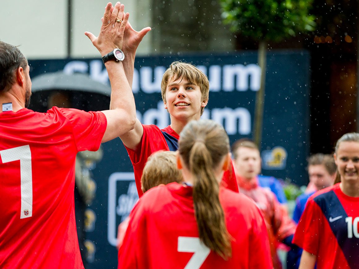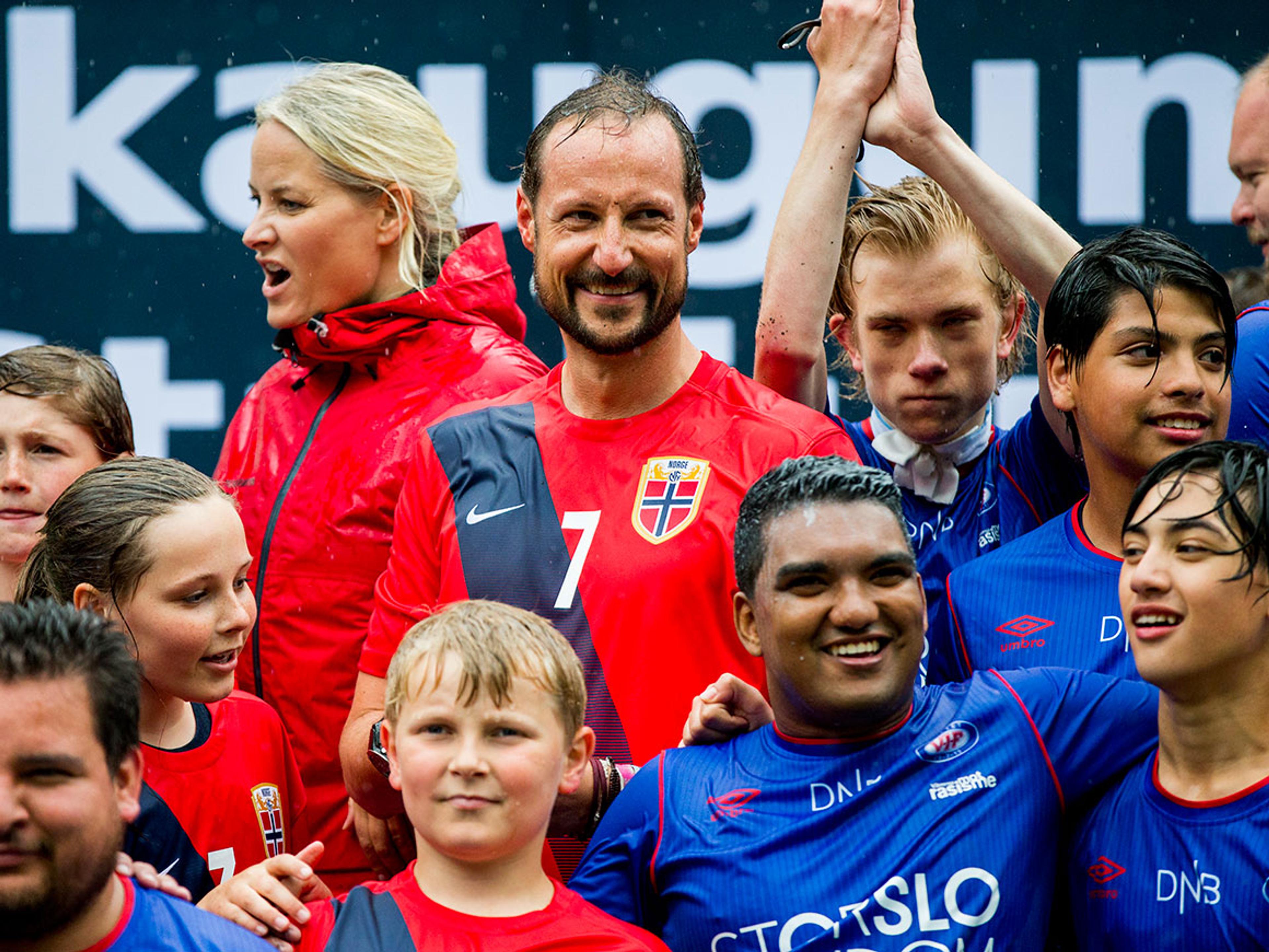 Hans Kongelige Høyhet Kronprinsen, Prinsesse Ingrid Alexandra og Prins Sverre Magnus deltok alle på Team Skaugums lag, alle kledd i den norske landslagsdrakten, mens Kronprinsessen dannet heiagjengen på sidelinjen under fotballkampen. Gårdsplassen, for anledningen omdøpt til "Skaugum stadium", var mandagens kamparena.
