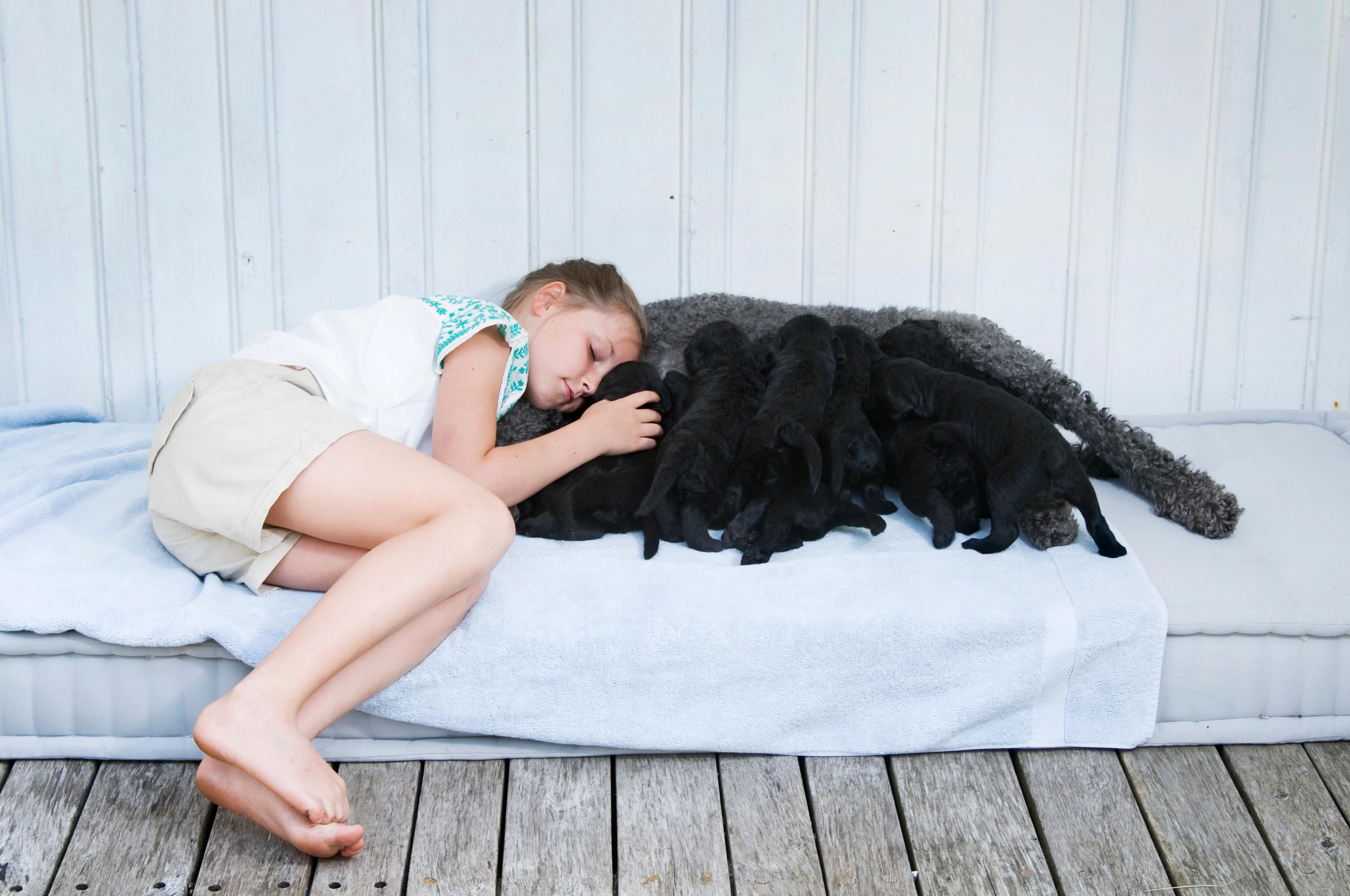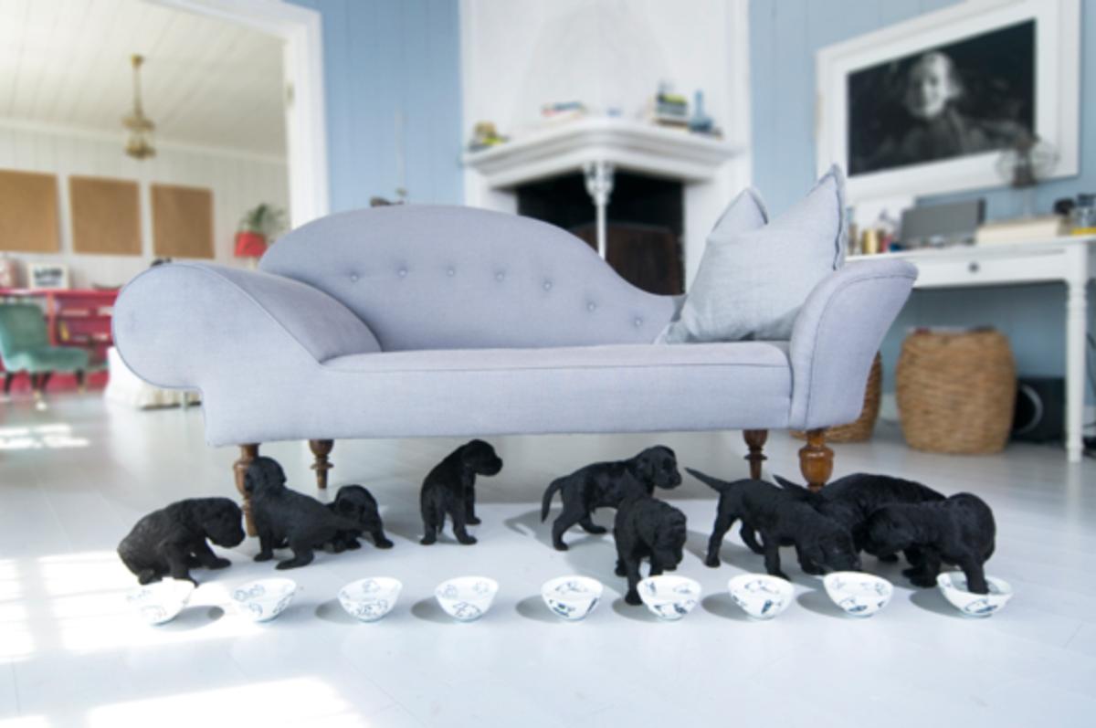 Den 15. juni fikk Kronprinsfamiliens hund, Milly Kakao, valper. Hele ni stykker. Det er nå tatt en serie bilder av Kronprinsfamilien og valpene.