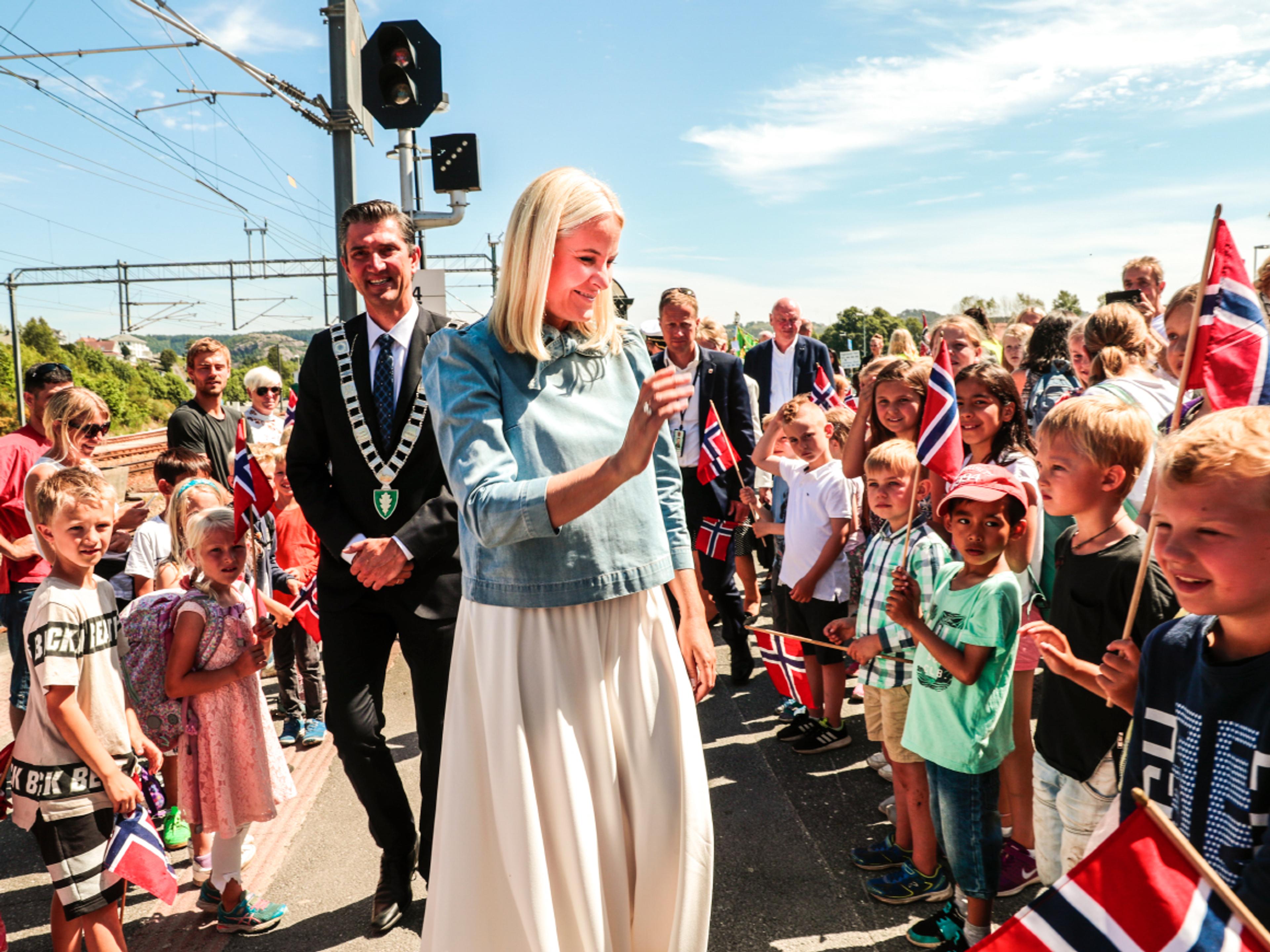 I kveld er Litteraturtoget i Stavanger. Men dagens reise startet i Egersund, der Hennes Kongelige Høyhet Kronprinsessen hadde invitert den prisbelønte forfatteren Monica Isakstuen til bokbad.