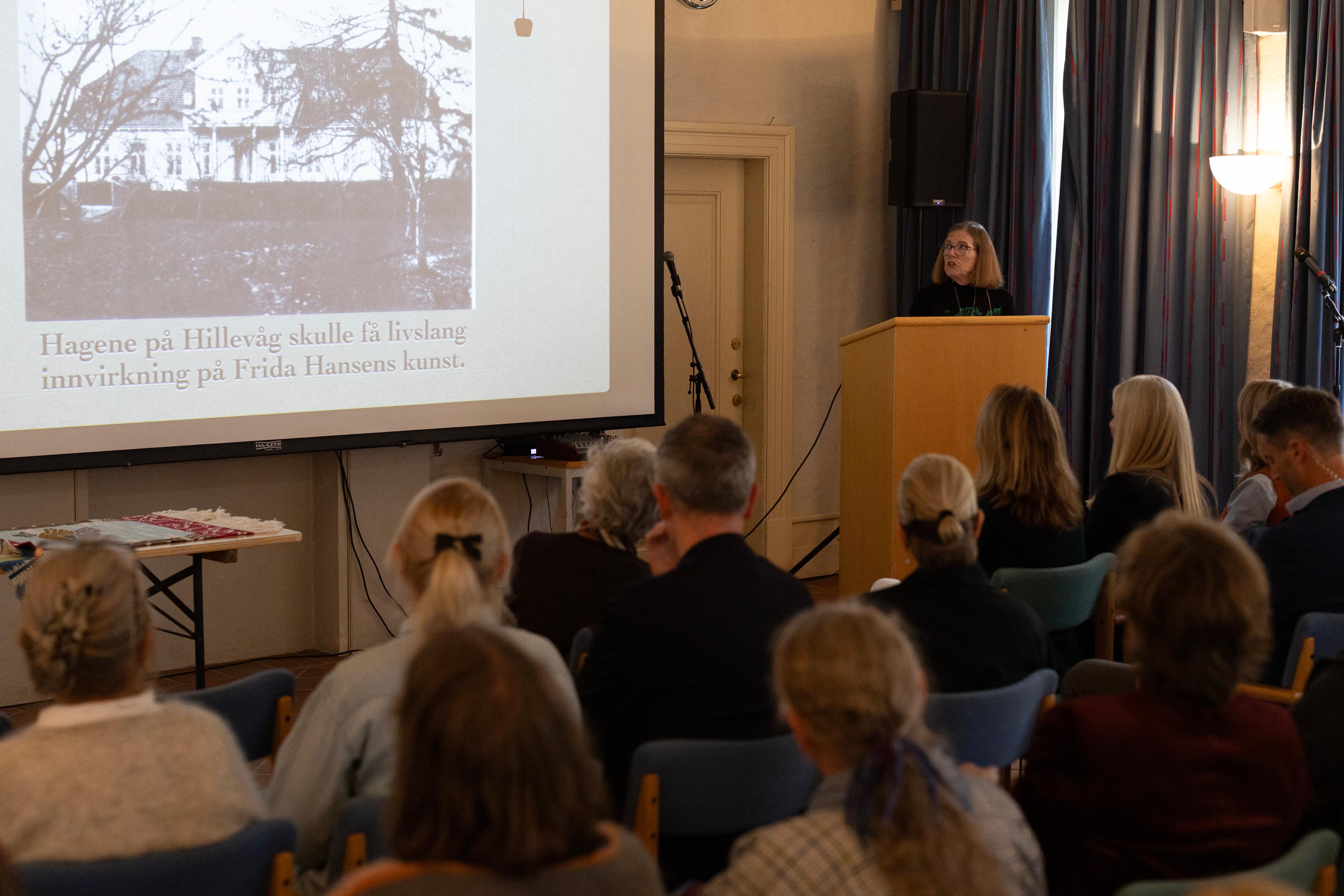 Foredraget Frida Hansen og transparentvev er del av museets satsing på å presentere dybdekunnskap om materiale, teknikk og kunst av nasjonal betydning. Publikum fikk innsikt i Frida Hansens liv, arbeider og hennes arv innen håndverkstradisjon og kunsthåndverk.