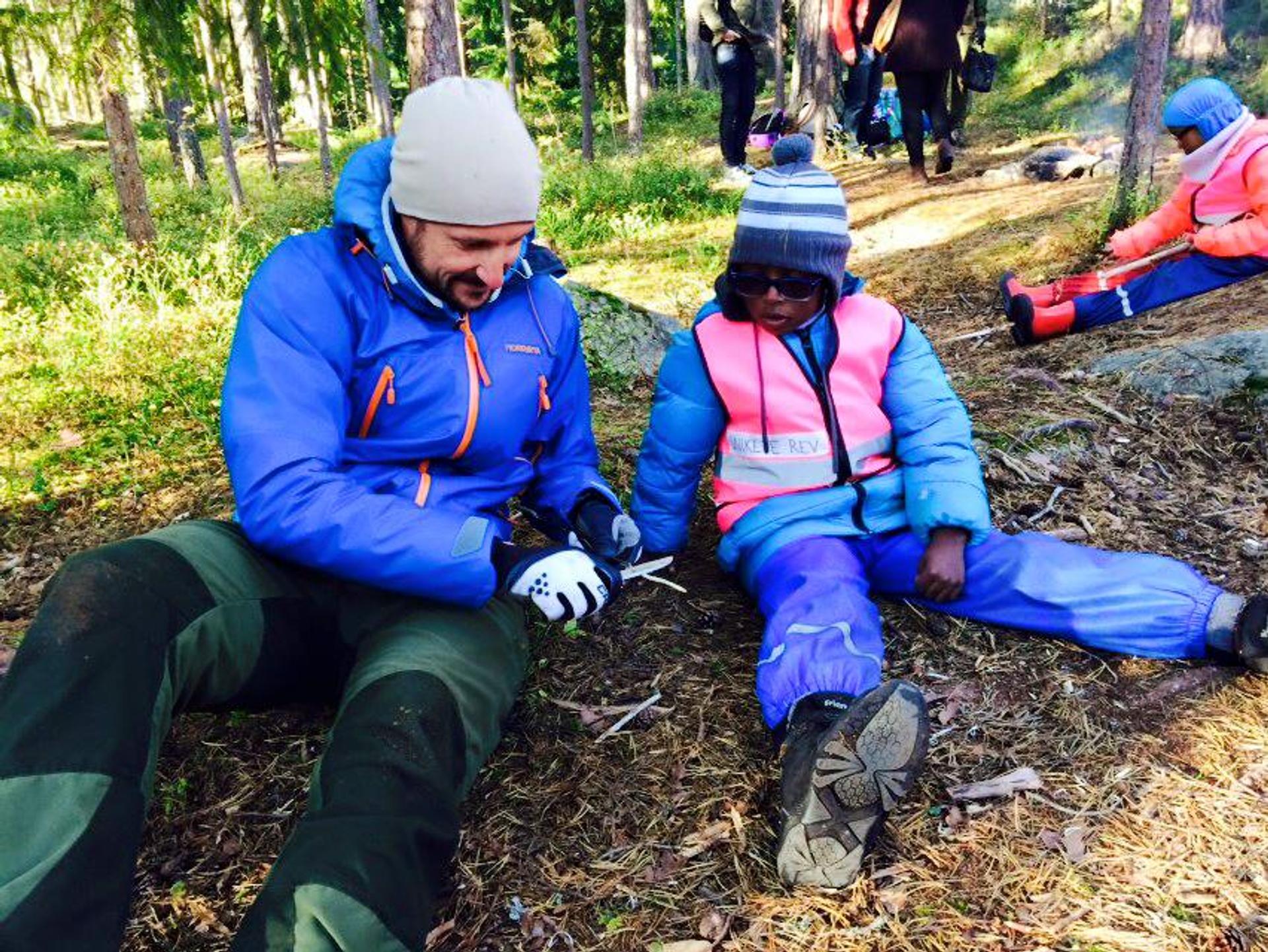 I dag dro Kronprins Haakon på tur sammen med 40 elever fra 3. trinn på Tveita skole. Sammen skulle de lære om naturens kretsløp og hvordan trærne forandrer seg gjennom året. Alle valgte seg indianernavn for dagen, og Kronprinsen var "Blå Sky".