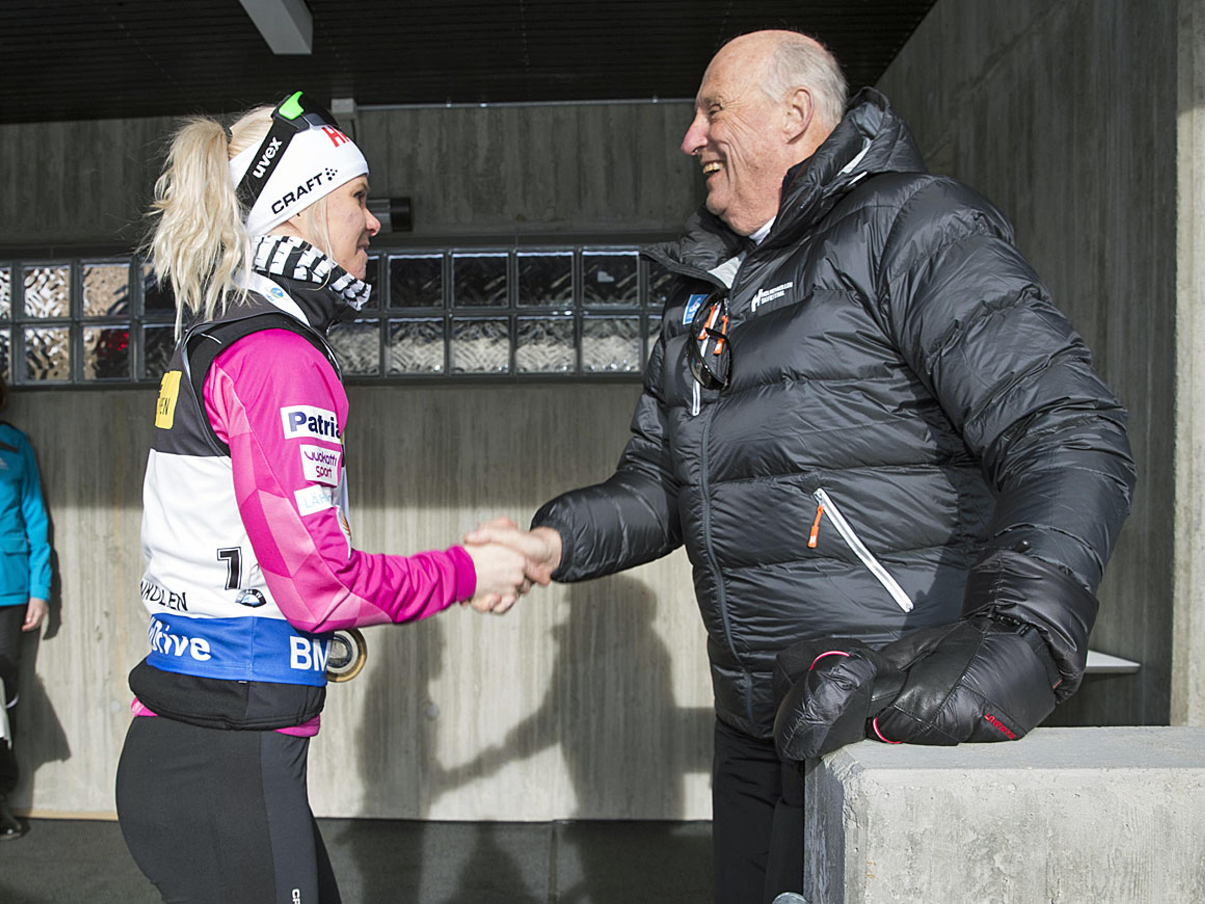 Hans Majestet Kongen var til stede i Holmenkollen i dag for å følge sprint i skyting for kvinner og menn. Det ble finsk og norsk seier i verdenscuprennene.