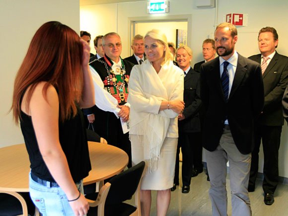 Kronprins Haakon holdt sin første tale for turen, og fokuserte på de store omstillingene kommunen har gjennomgått etter nedleggelsen av Forsvarets anlegg på Evjemoen i 2002. To konkrete resultater av denne omstillingen var de neste postene på Kronprinsparets program: