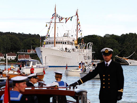 I kveld holder Kronprinsparet mottakelse for inviterte gjester ombord på "Norge".