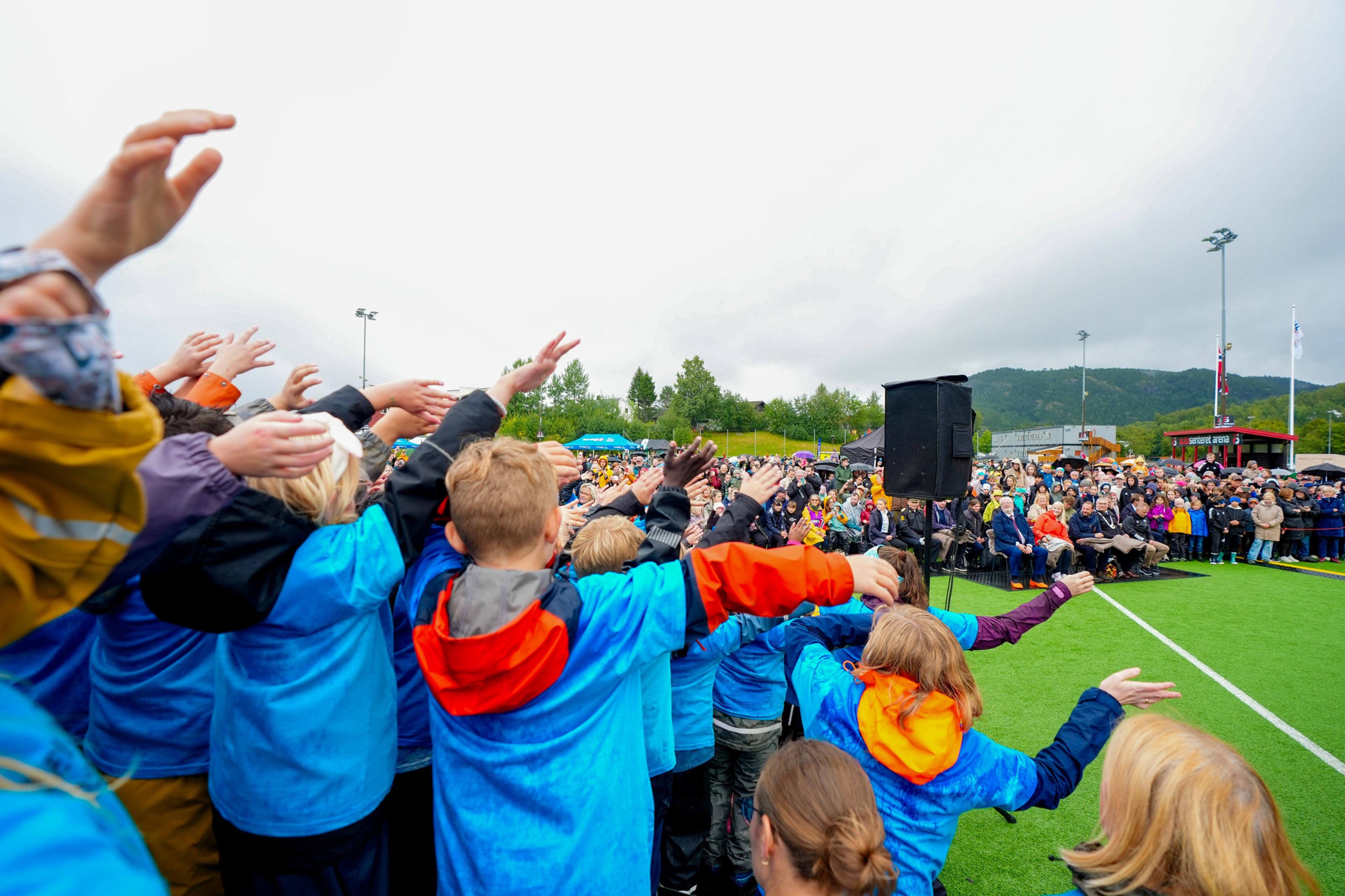 – Det å få en sånn pris er en oppmuntring til å fortsette å holde fokus. Både dere som selv er ungdom og vi som er foreldre, vet at ungdomstiden kan være en veldig spennende – men også sårbar fase i livet. Da er det viktig at vi ser hverandre og at vi prøver å være der for hverandre, sa Kronprinsen i sin tale under arrangementet utenfor ungdomsskolen.