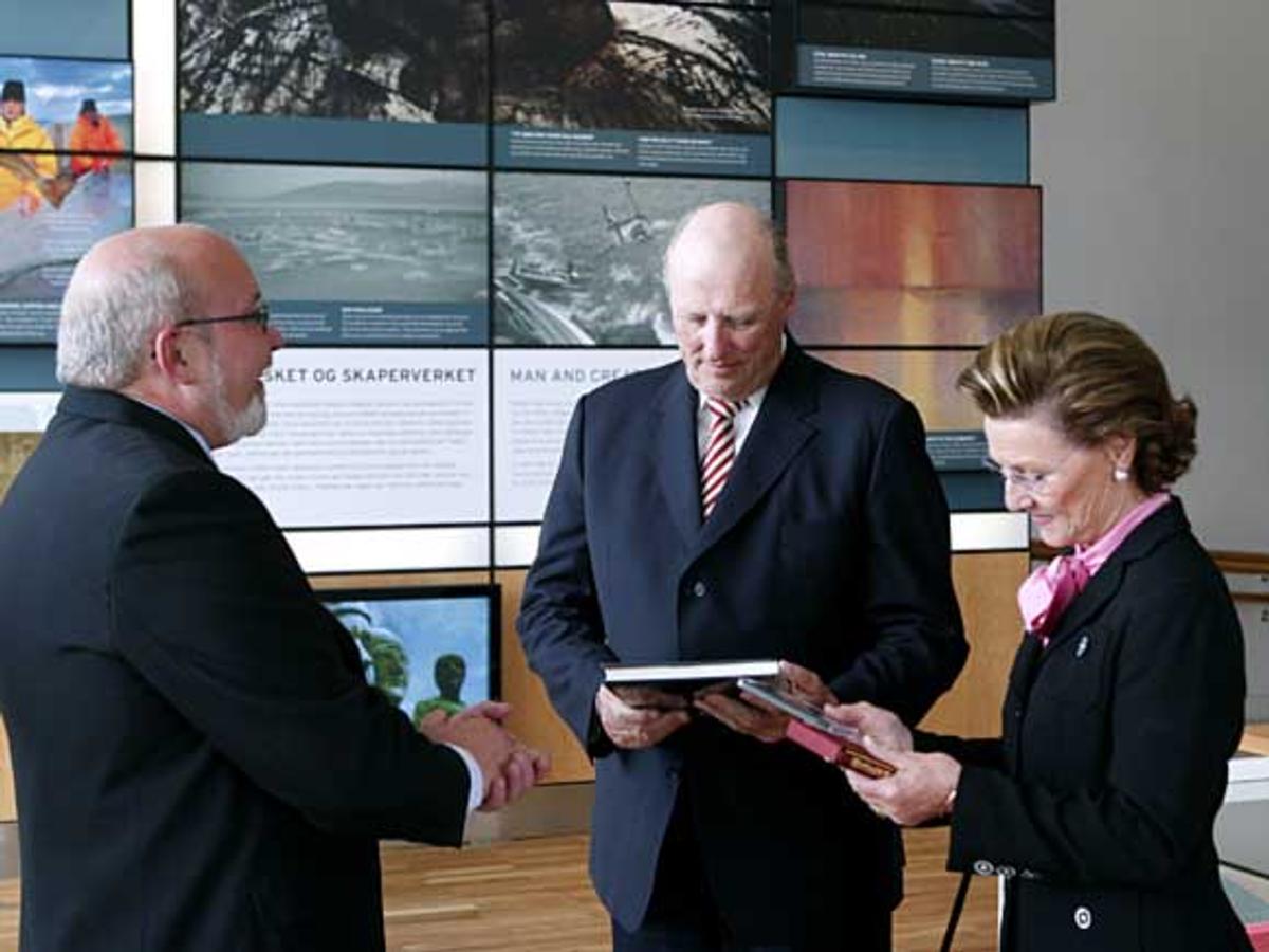 Seinare var det tid for ei omvising i Kystkultursenteret og ei orientering om lokalt næringsliv, før Kongeparet drog til Naustholmen industripark. Her blir det drive oppdrett av laks og torsk, i tillegg til produksjon av fiskemjøl, fiskeolje og isoporkassar.