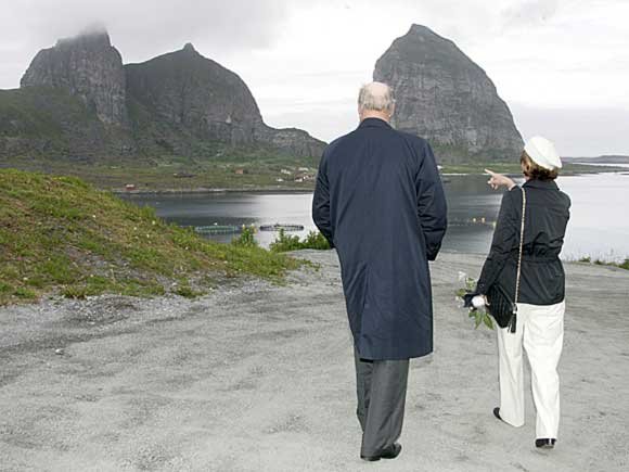 Måndag innleidde DD.MM. Kongen og Dronninga ein fire dagars fylkestur i Nordland. Kongeparet nyttar Kongeskipet under reisa, og måndag ettermiddag la K/S Norge til ved Alstahaug.