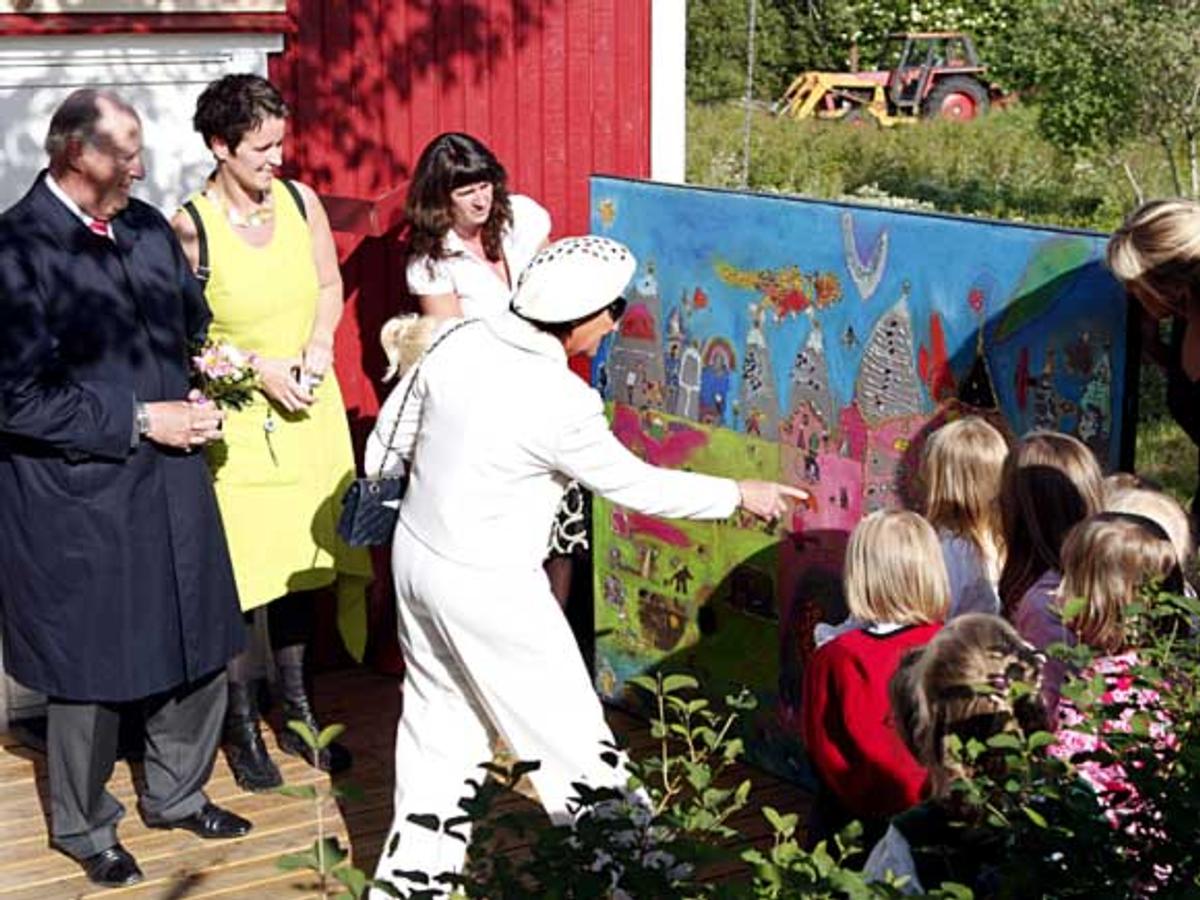 Om ettermiddagen reiste Kongen og Dronninga vidare til Lovund i Lurøy kommune. Her var Kongeparet først til stades ved eit festarrangement i den nye barnehagen, der Kong Harald planta eit tre utanfor.