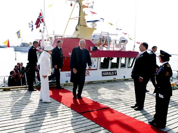 Etter besøket ved Naustholmen forlét Kongeparet Lovund og gjekk om bord i redningsskøyta ”Harald V”, som frakta dei til Lurøy.