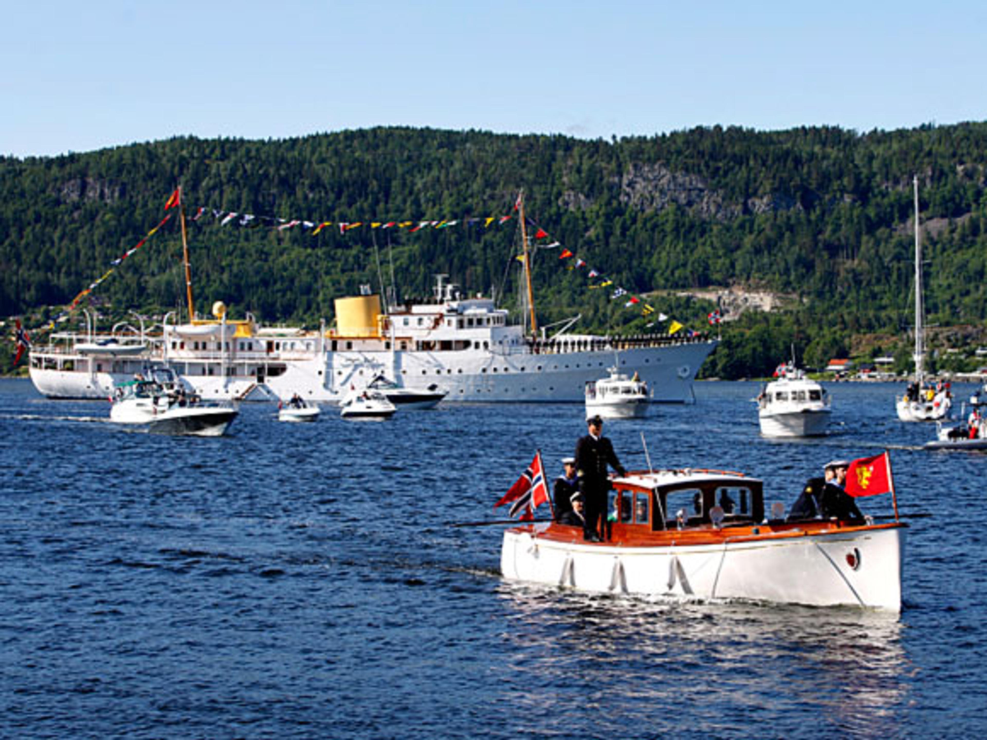 I løpet av tre dager skal Kongeparet besøke Sande, Re, Andebu, Tønsberg, Nøtterøy og Tjøme kommuner, og det er Kongeskipet Norge som er De kongeliges base under turen. I morges tok sjaluppen Kongen og Dronningen inn til Nordre Jarlsberg brygge, der de ble ønsket velkommen til Vestfold.