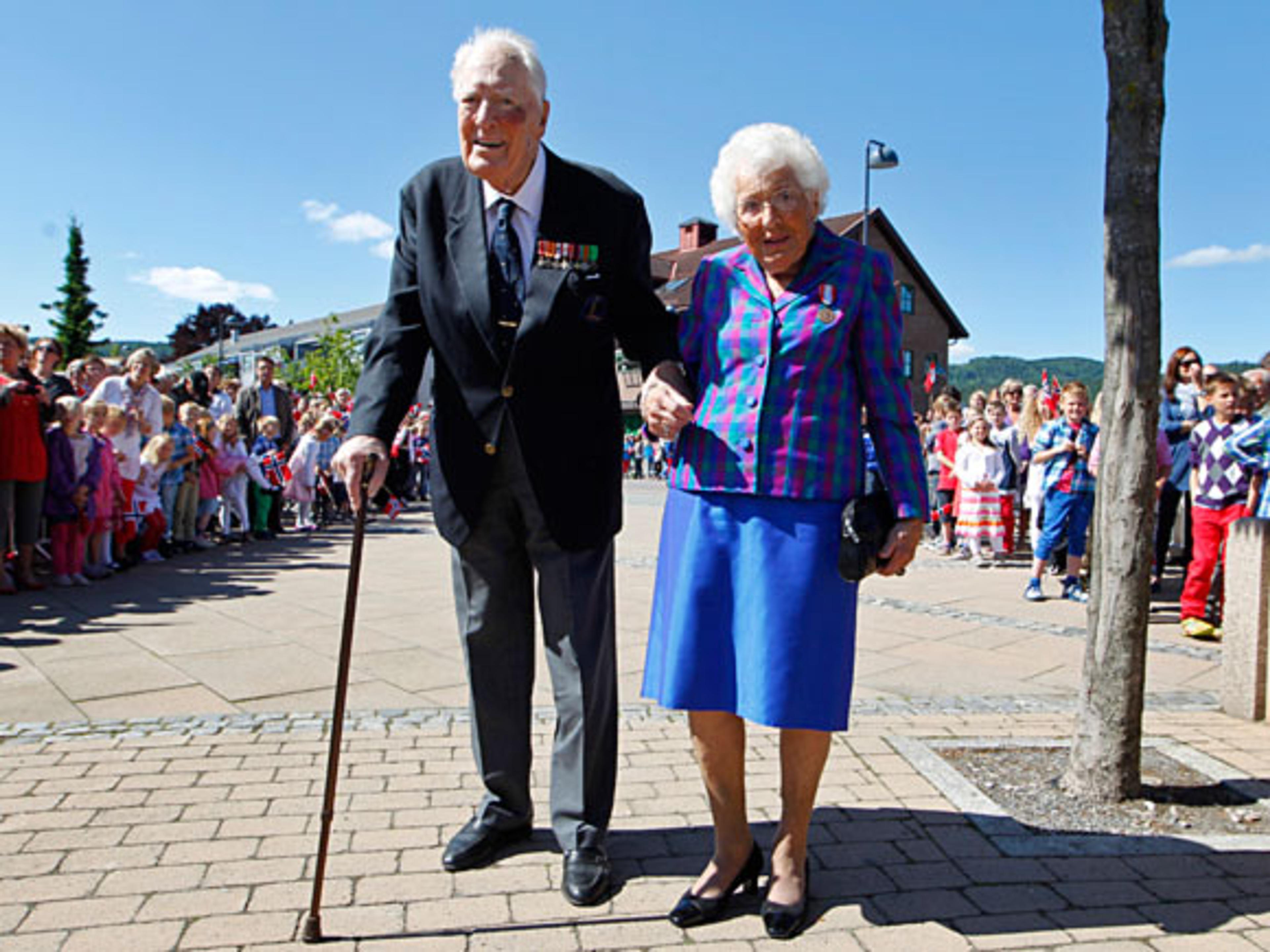 I Sande sentrum spaserte Kong Harald og Dronning Sonja opp hovedgaten «Fila», til torget der det var rigget til med både taler, dans og musikk. Sande musikkorps og Sande Danseverksted underholdt, og ikke minst den 14 år gamle trekkspilleren Maren Sofie Nyland Johansen imponerte.