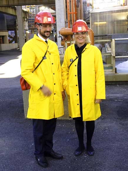 På INEOS' anlegg på Rafnes fekk Kronprinsen og Kronprinsessa ei omvising på fabrikkområdet før eit besøk i kontrollrommet ved etylenfabrikken.