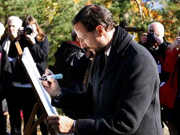 Etter ei mottaking i Kragerø hamn fekk Kronprinsen og Kronprinsessa ei omvising i Kittelsenmuseet. Deretter gjekk turen opp på ”Steinmannen” – utsiktspunktet over Kragerø. Her teikna Kronprins Haakon og Kronprinsesse Mette-Marit signaturane sine, for plassering ved sida av namnetrekka til Kong Harald og Dronning Sonja.
