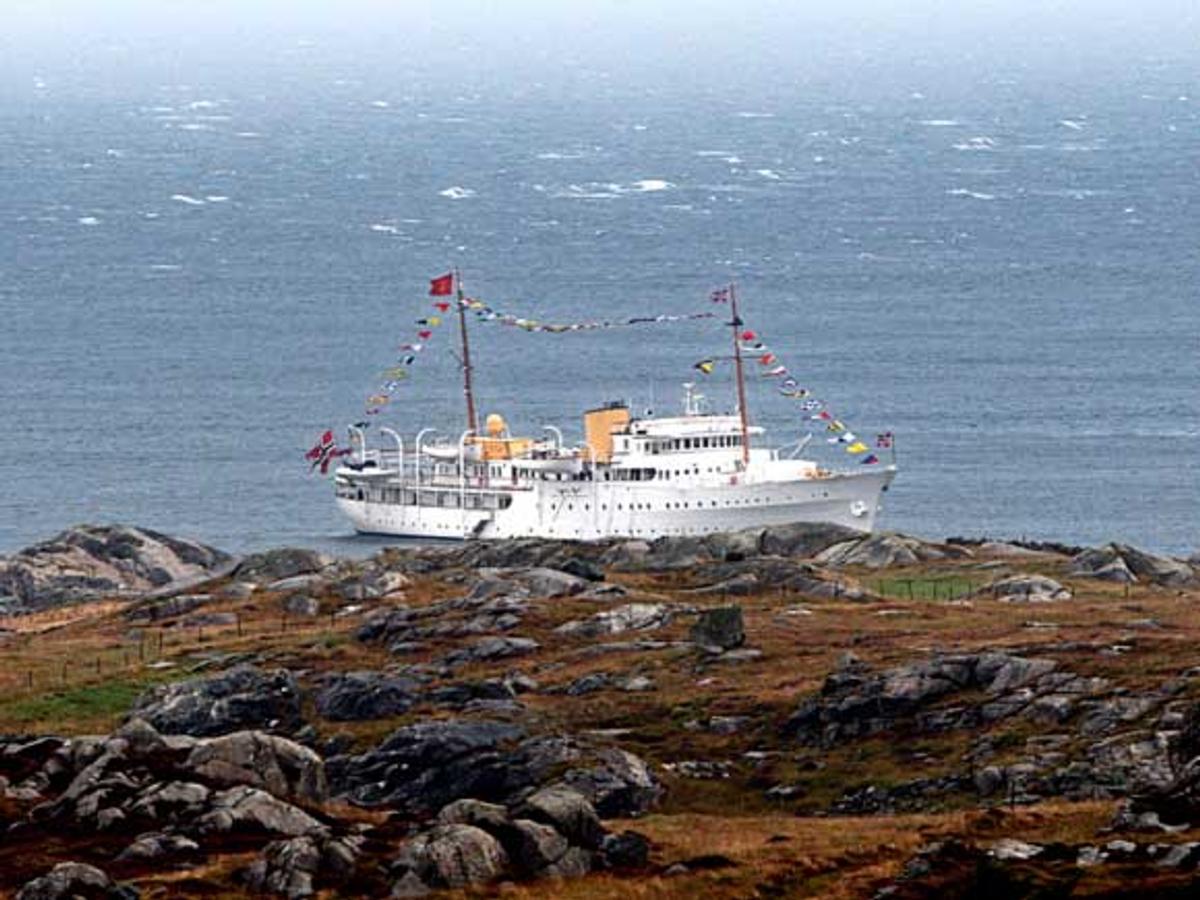 DD.KK.HH. Kronprinsen og Kronprinsessa er på fylkestur til Rogaland. Kronprinsparet nyttar Kongeskipet Norge på reisa, og første stopp var Utsira utanfor Karmøy.