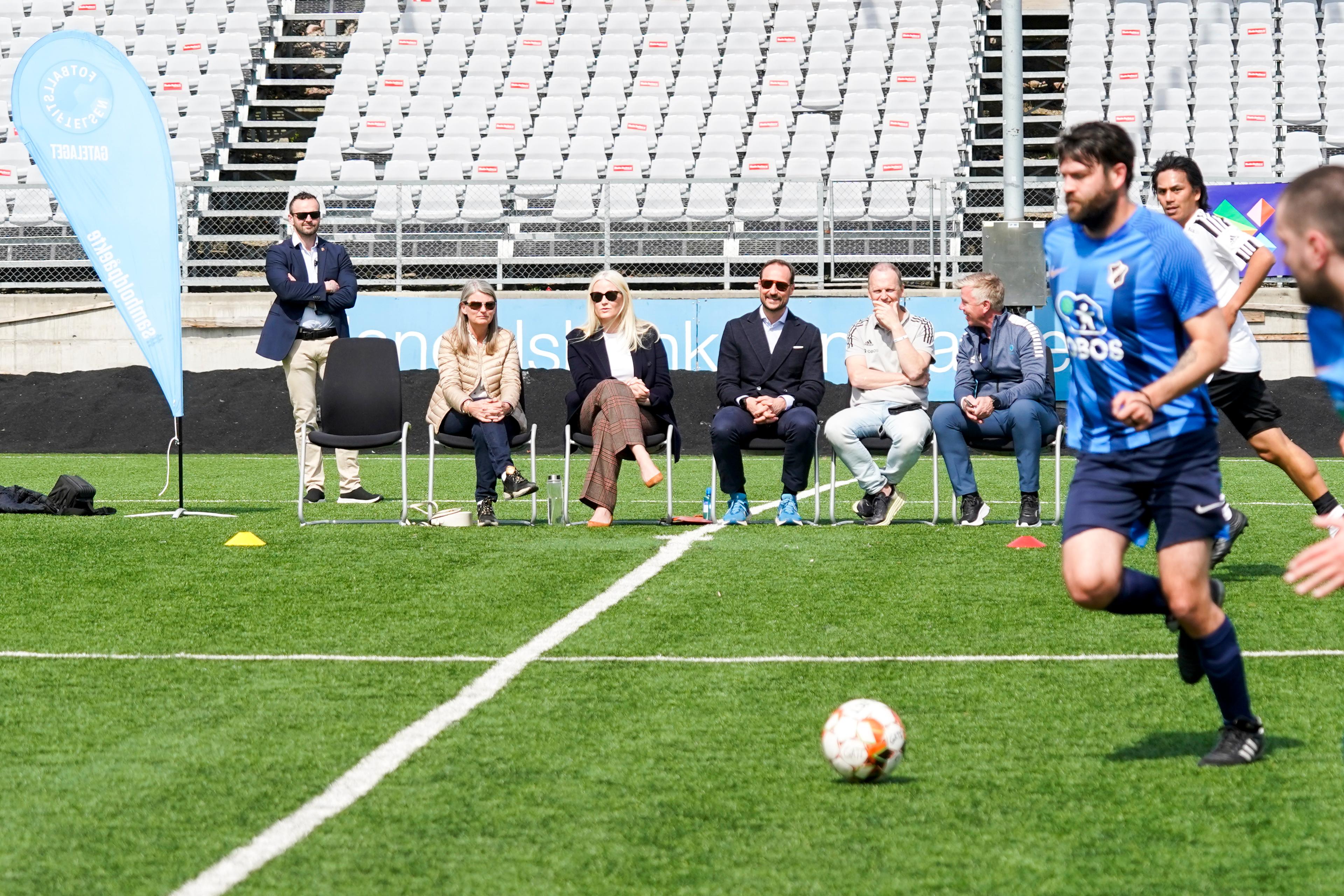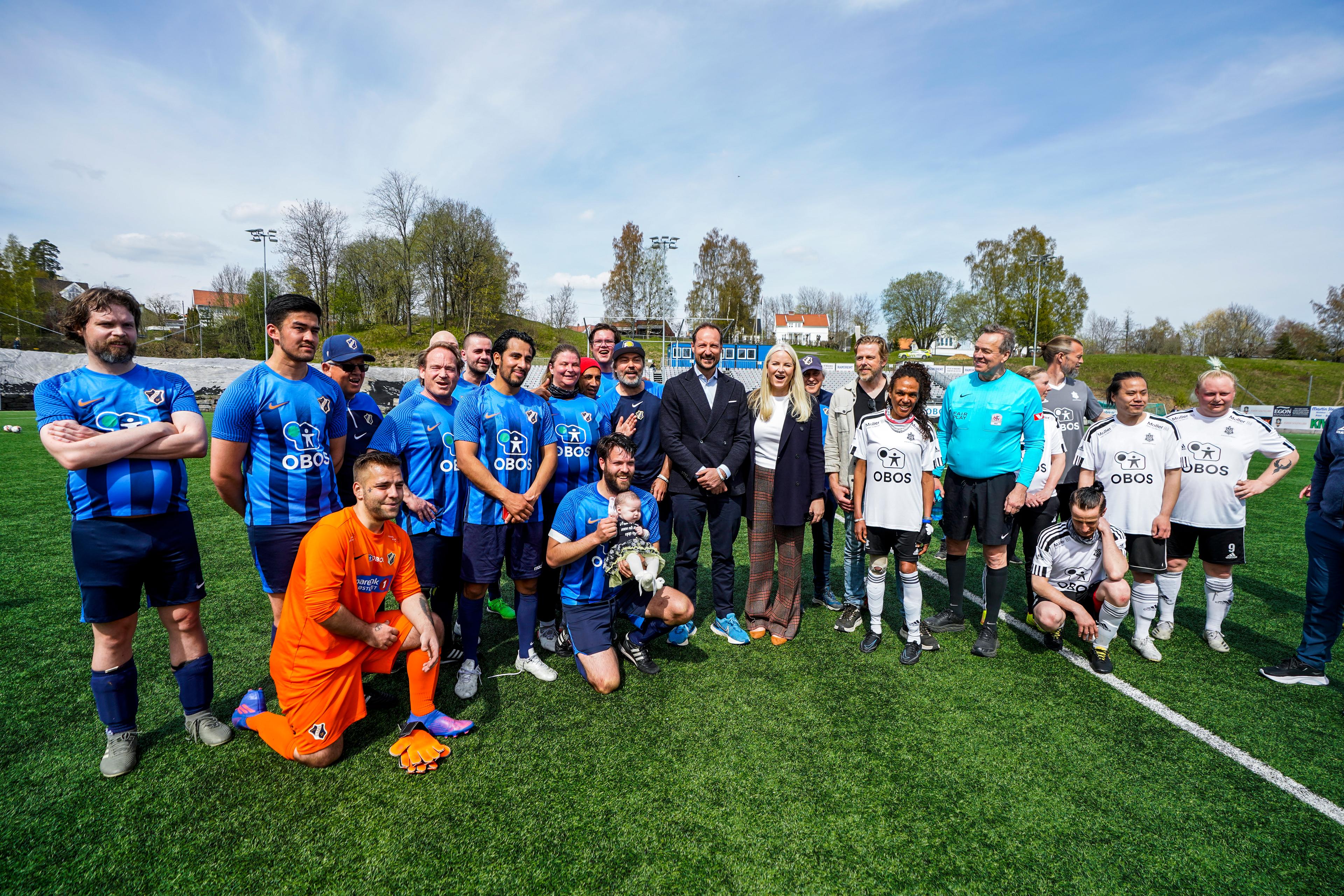 Kronprinsparet møtte spillere, trenere og involverte i prosjektet da det var duket for kamp mellom Asker og Stabæk gatelag på Føyka stadion i Asker. Etter å ha fulgt en spennende andreomgang kunne Kronprinsparet gratulere spillerne fra Stabæk med seieren.