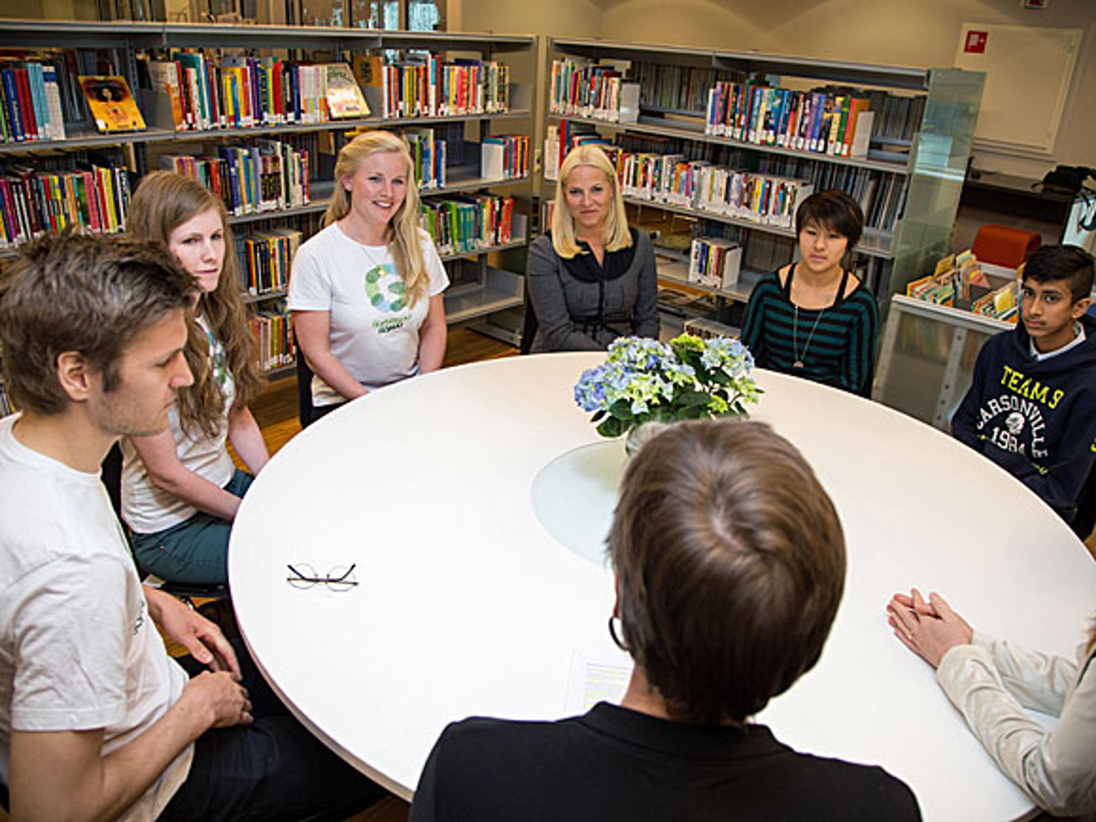 H.K.H. Kronprinsesse Mette-Marit møtte Miljøambassadørene i dag. Hun var til stede da ambassadørene holdt foredraget Generasjon Grønn på Rommen skole i Oslo.