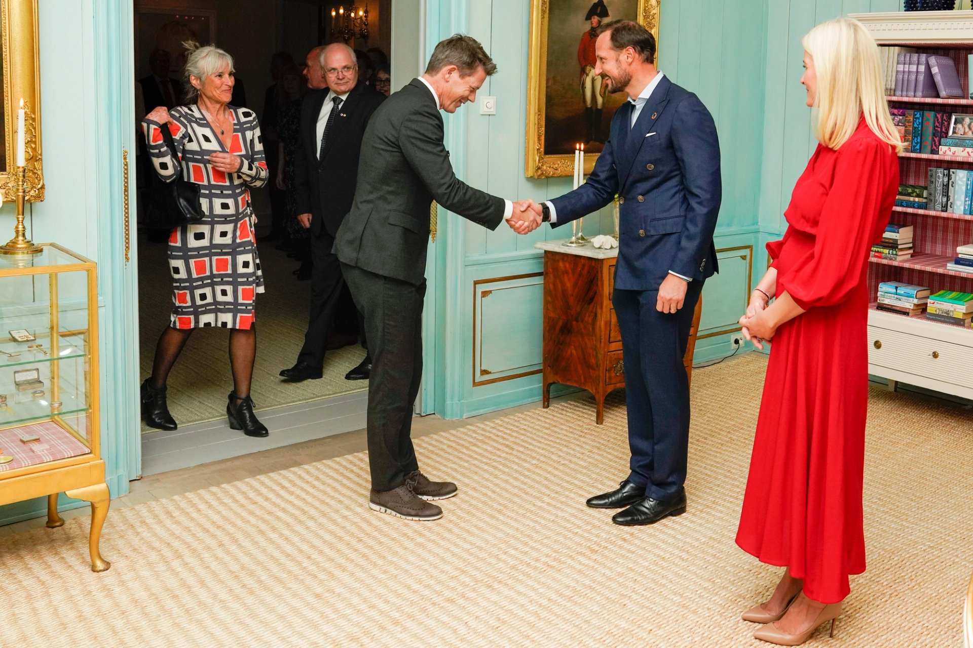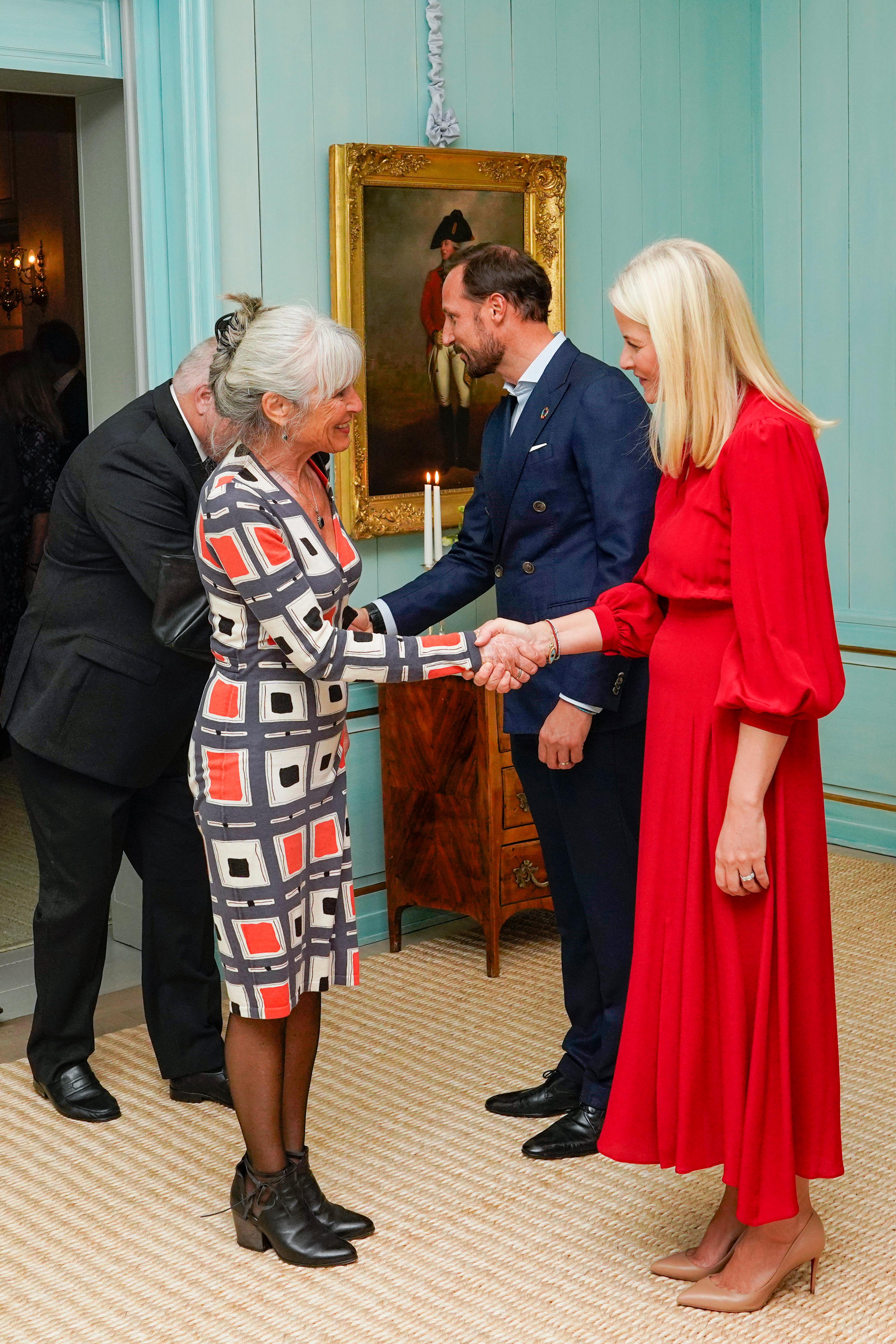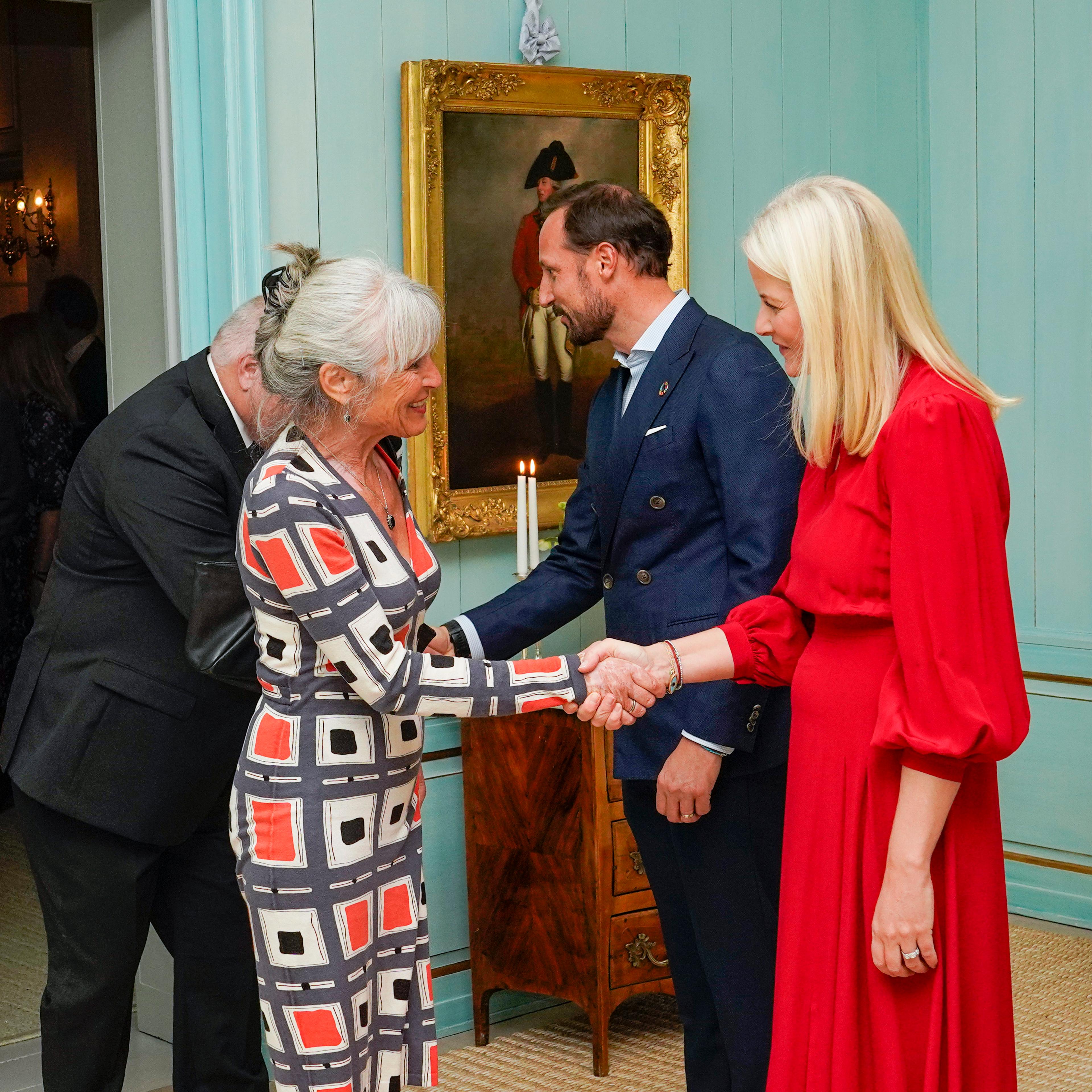 Kronprinsparet holdt gjestebud på Skaugum i kveld. De 60 inviterte gjestene er Røde Kors-delegater som står klare til å reise på kort tid i en katastrofesituasjon.