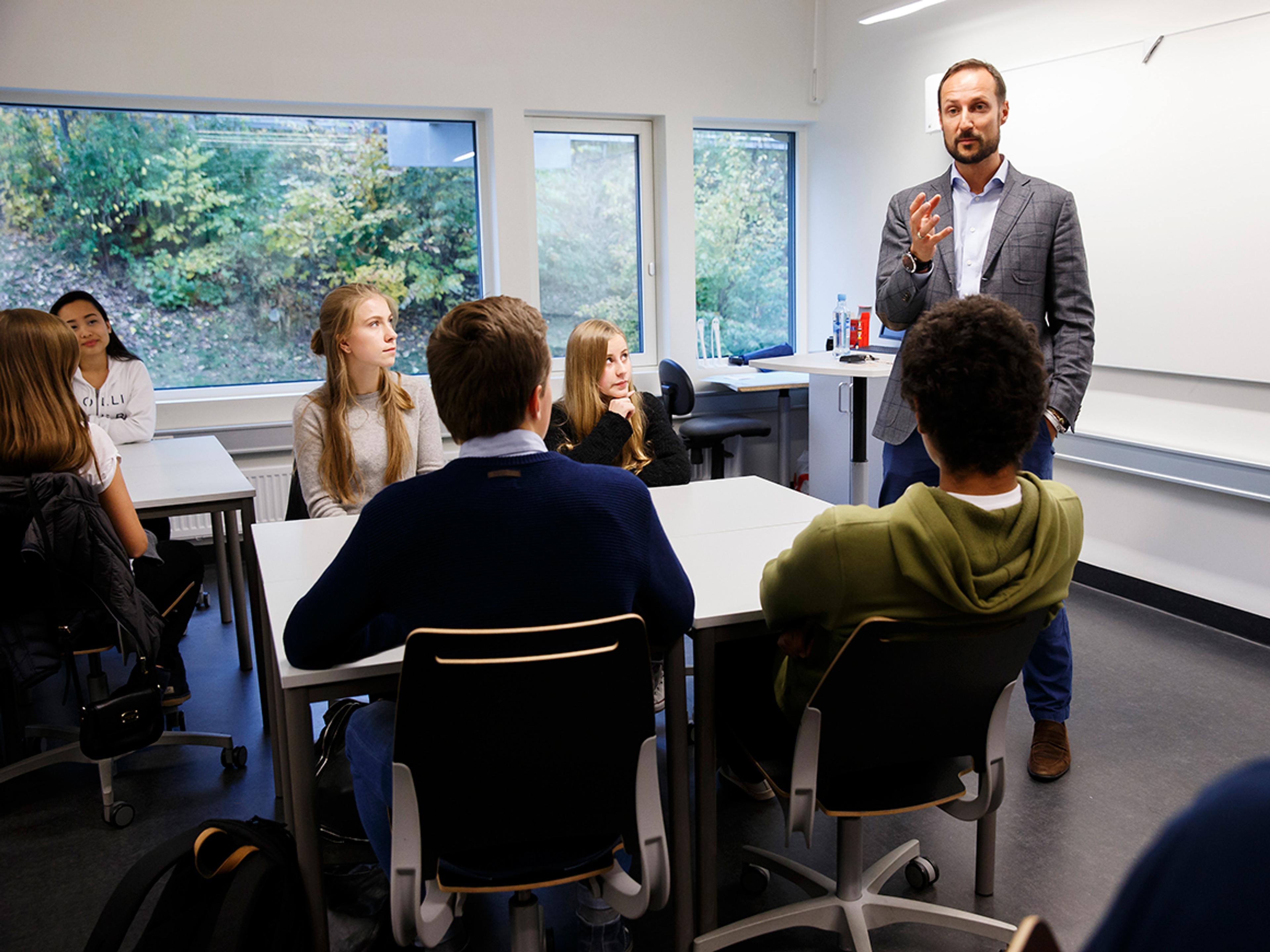 Kronprins Haakon deltok i markeringen på Nydalen videregående i dag. Han presenterte dagen i plenum og ledet samtalen rundt verdighet i en av klassene. Elever som ønsket det, presenterte sine historier om verdighet under en avsluttende samling, som en felles avslutning på de to timene.