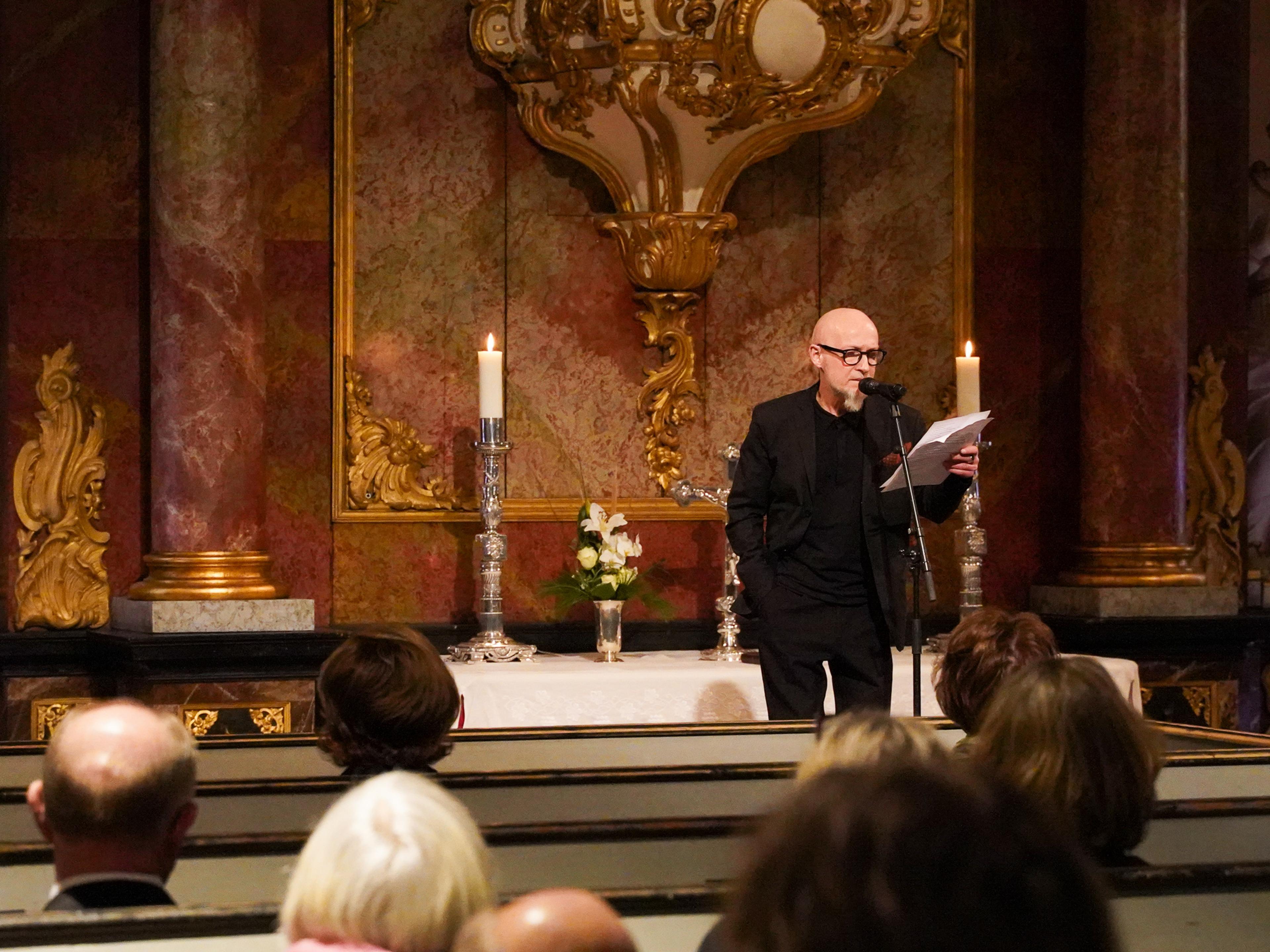 Før siste del av konserten fremførte forfatteren Lars Saabye Christensen en prolog foran 200 publikummere om tiden vi nå har vært inne i og alt det fine som ligger foran oss av møter med mennesker og kultur når pandemien er over.