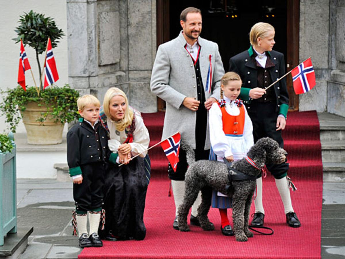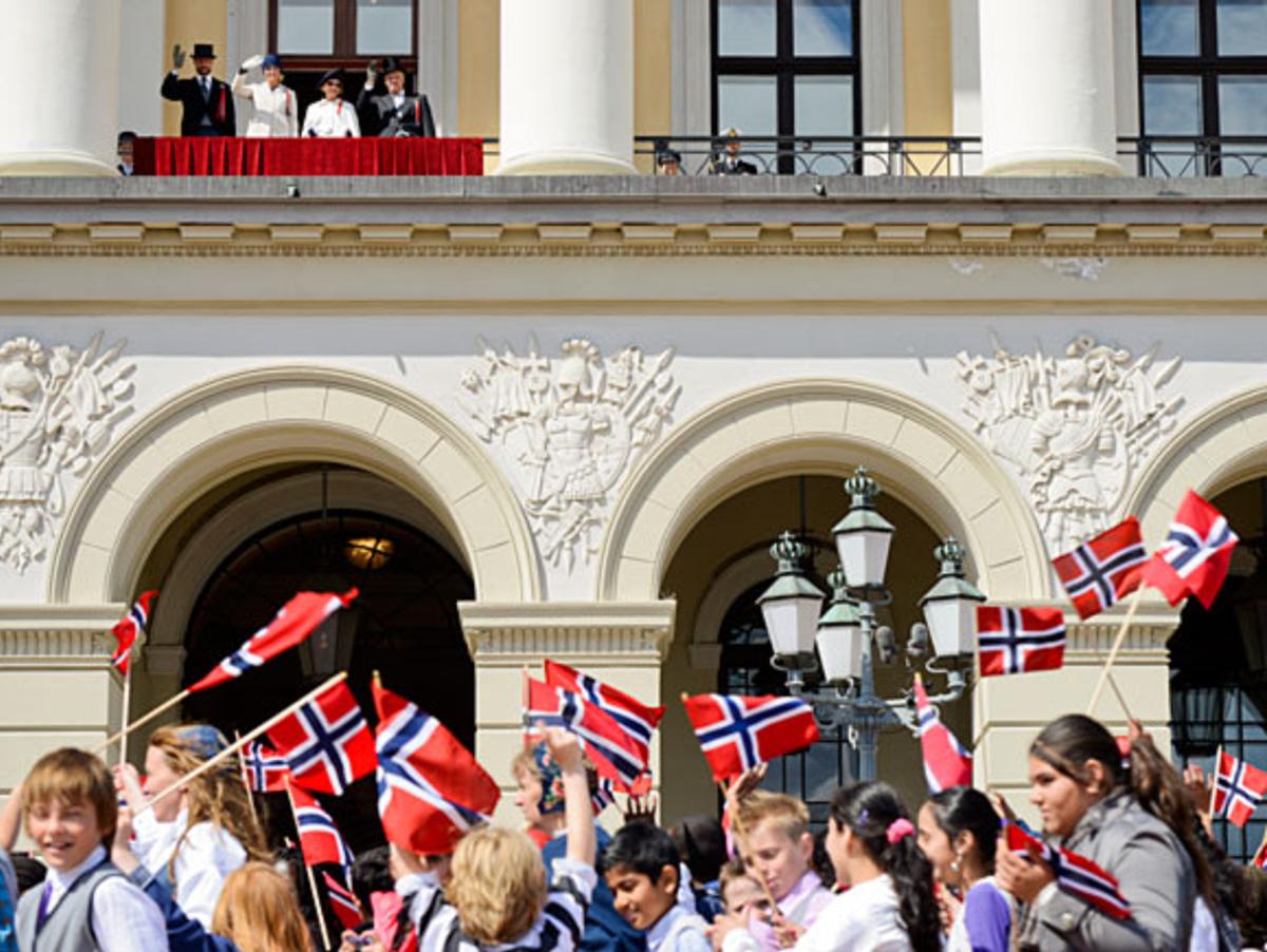 Kong Haakon og Dronning Maud som innstiftet skikken med å hilse barnetoget i Oslo fra Slottsbalkongen i 1906. Skikken har vært holdt i hevd alltid siden. De eneste unntakene var i 1910 da Dronning Mauds far, den engelske Kong Edward ble begravd, og i krigsårene 1940-1944.