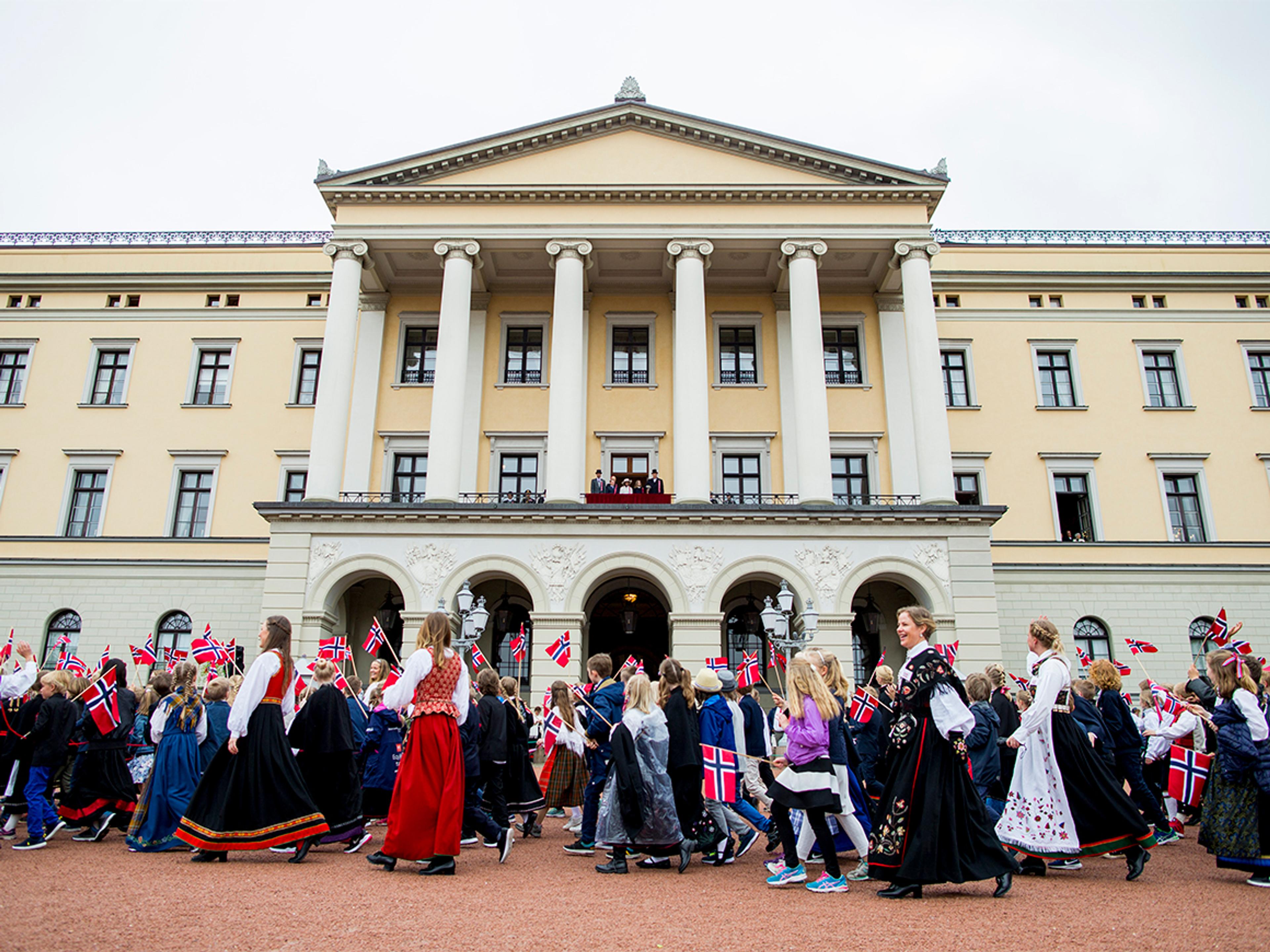 Det var Kong Haakon og Dronning Maud som innstifta skikken med å helse barnetoget i Oslo frå Slottsbalkongen. Skikken vart etablert i 1906 har vore halden i hevd alltid sidan. Dei einaste unnataka var i 1910, da Dronning Mauds far, den engelske Kong Edward, vart gravlagd, og i krigsårene 1940–1944.