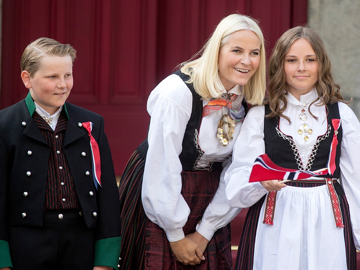 Kronprinsfamilien starta dagen i Asker, der dei tok imot barnetoget utanfor Skaugum frå klokka 08.00. Da klokka vart 10.30, nærma barnetoget i Oslo seg Slottsplassen, og Kongefamilien gjekk ut på Slottsbalkongen for å ta imot dei.