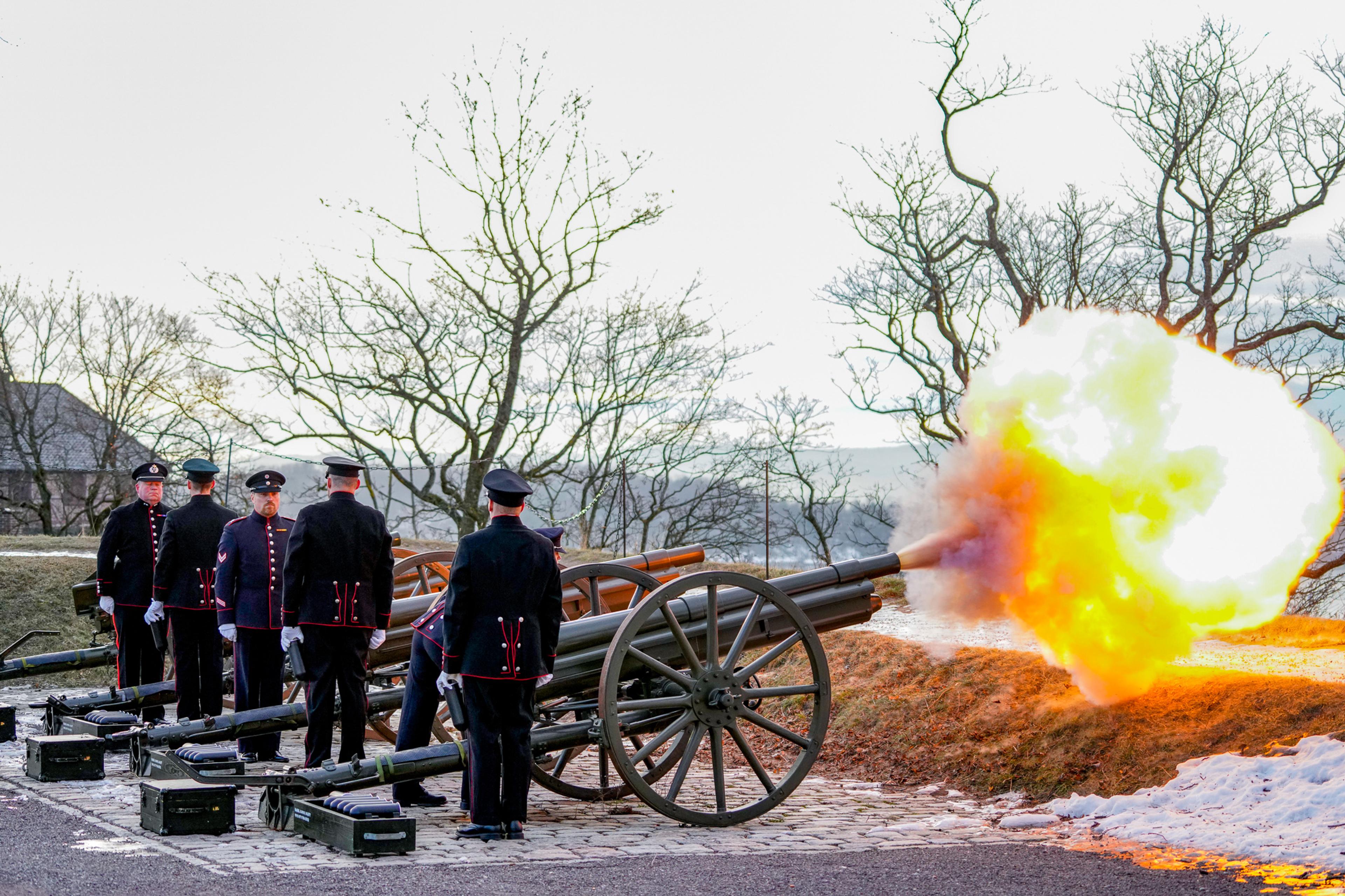Klokken 12.00 i dag – mens Prinsesse Ingrid Alexandra mottok gratulasjonsdeputasjoner på Slottet – ble det saluttert fra Forsvarets saluttpliktige festninger og skip i anledning 18-årsdagen.