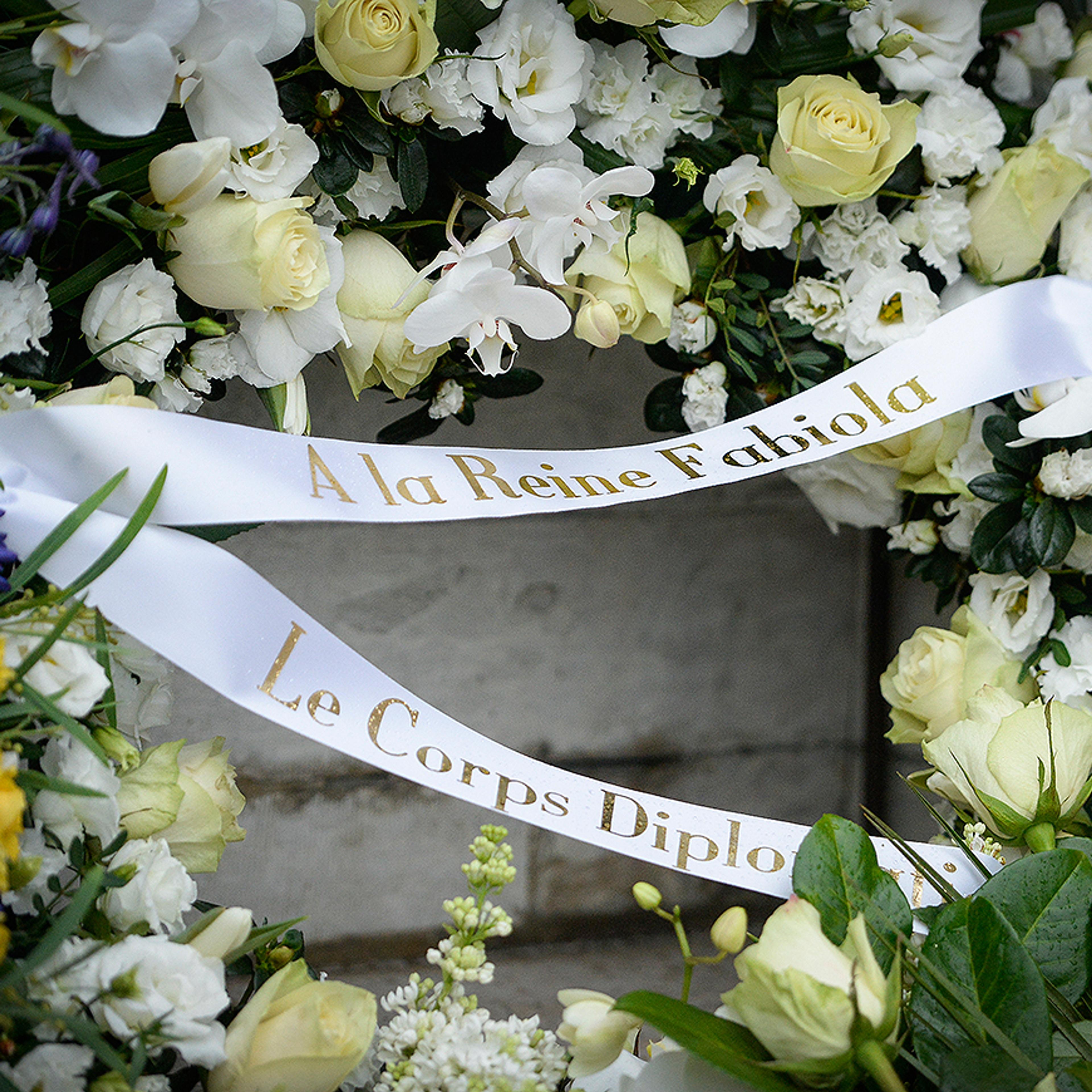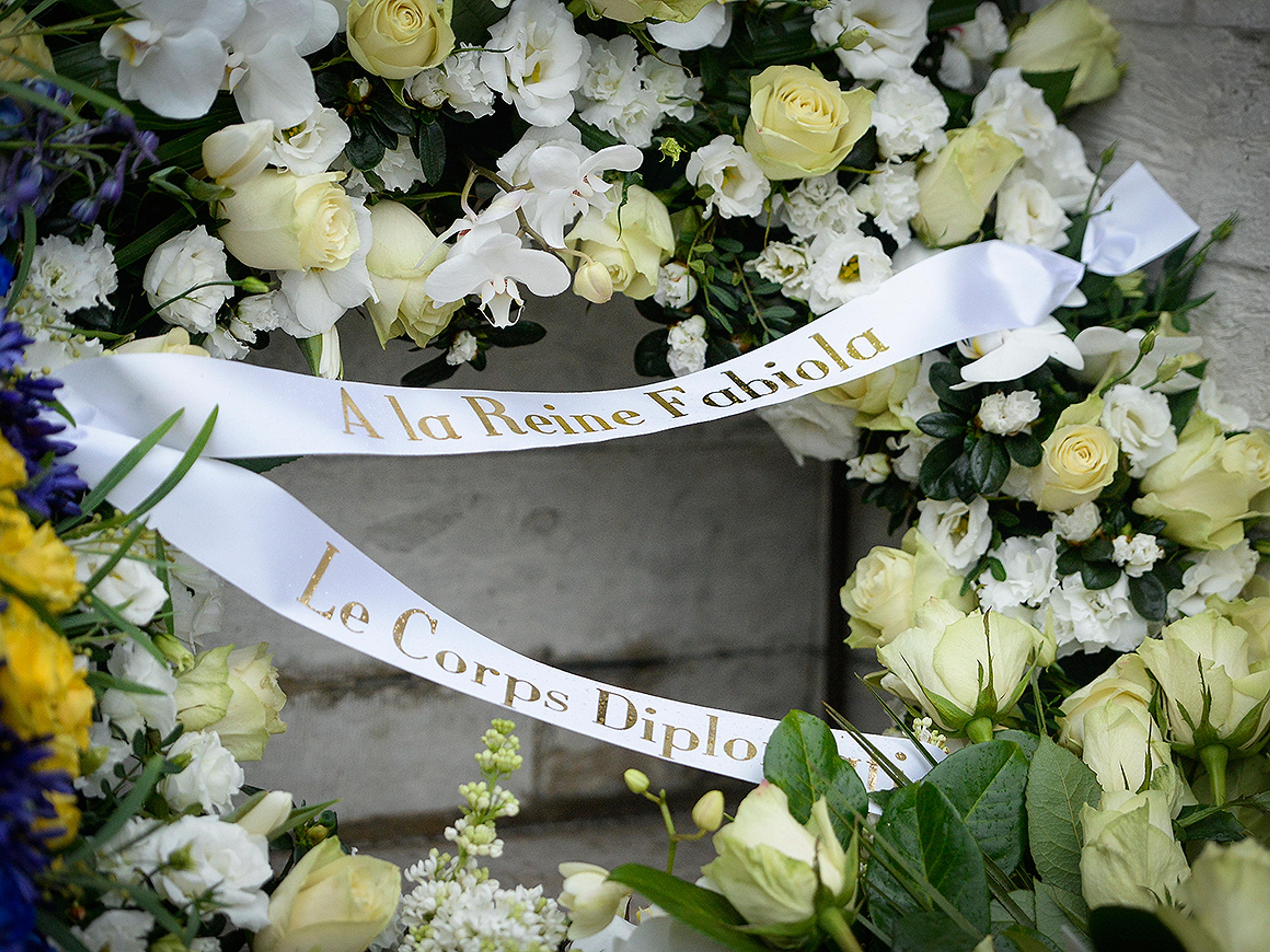 Dronning Fabiola ble 86 år gammel og døde fredag kveld på slottet Stuyvenberg der hun bodde. Båren var drapert i det belgiske flagget og plassert foran i kirkekoret. Utenfor kirken ventet mer enn tusen mennesker for å vise Belgias femte Dronning den siste ære.