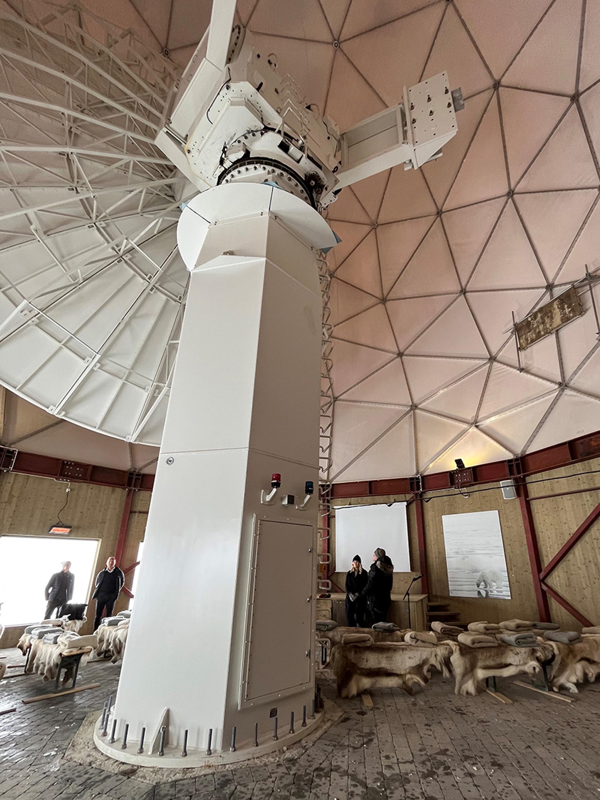 Stasjonen ligger på Platåfjellet utenfor Longyearbyen, og der tok stasjonssjef Maja-Stina Ekstedt imot Kronprinsparet i dag. Kronprinsen og Kronprinsessen fikk en orientering om hvordan stasjonen opererer og besøkte både operasjonssenteret og selve antennen.