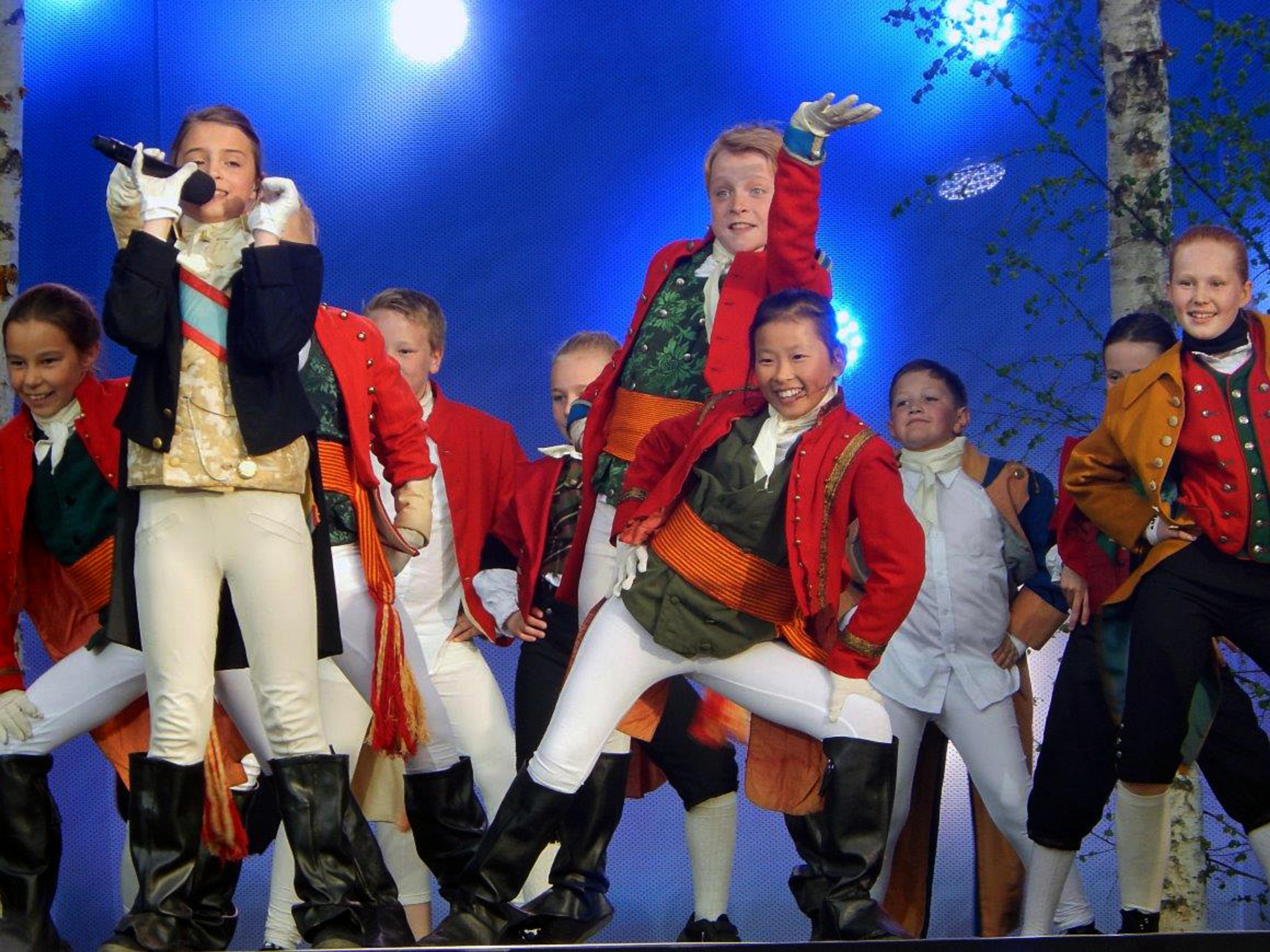 Programledere på scenen er Haddy N'jie og Jakob Oftebro, og et stort barnekor fra Eidsvoll slo an tonen.