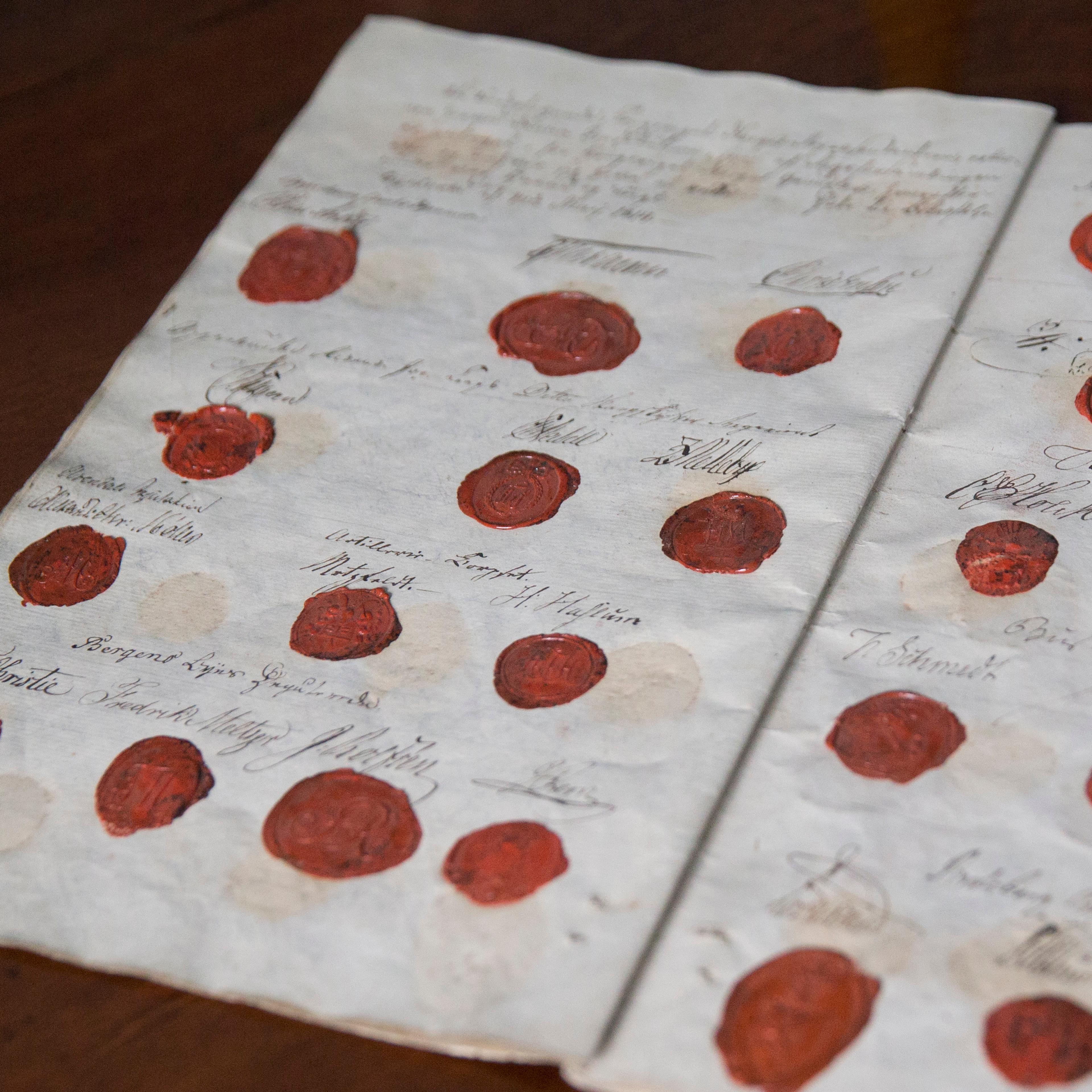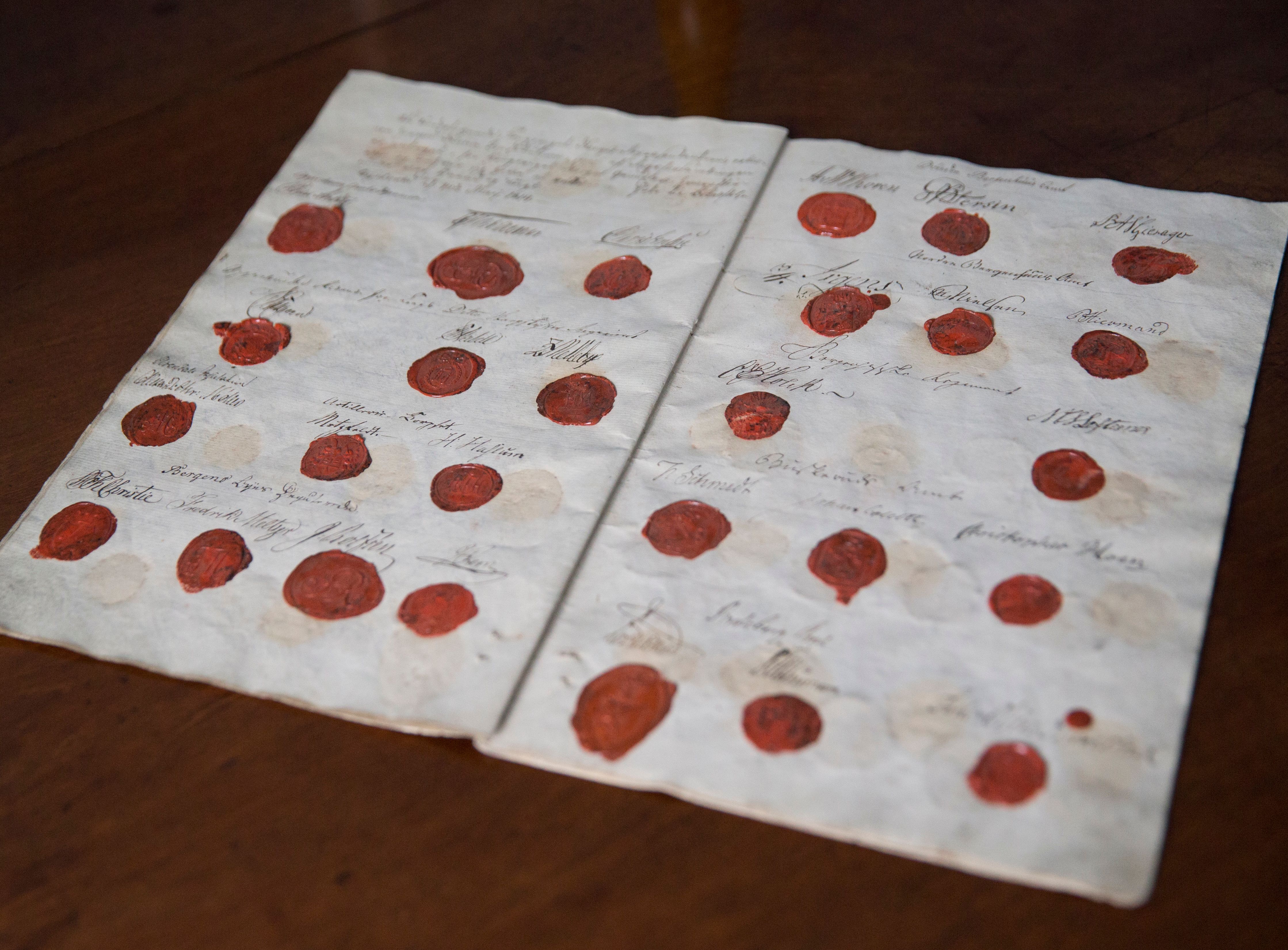 Selve jubilanten - den originale Grunnloven - er også tilbake på Eidsvoll, på bordet der den ble signert for 200 år siden. Normalt blir den oppbevart i Stortinget.