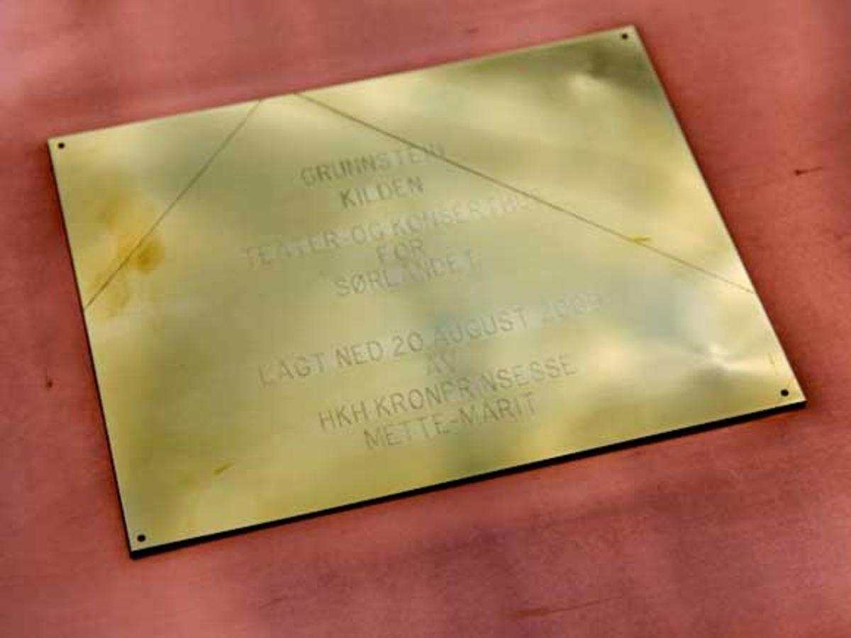 Hennes Kongelige Høyhet Kronprinsessen la torsdag ned grunnstenen til Kilden teater og konserthus på Odderøya i Kristiansand. Det nye kulturbygget skal etter planen innvies i 2012.