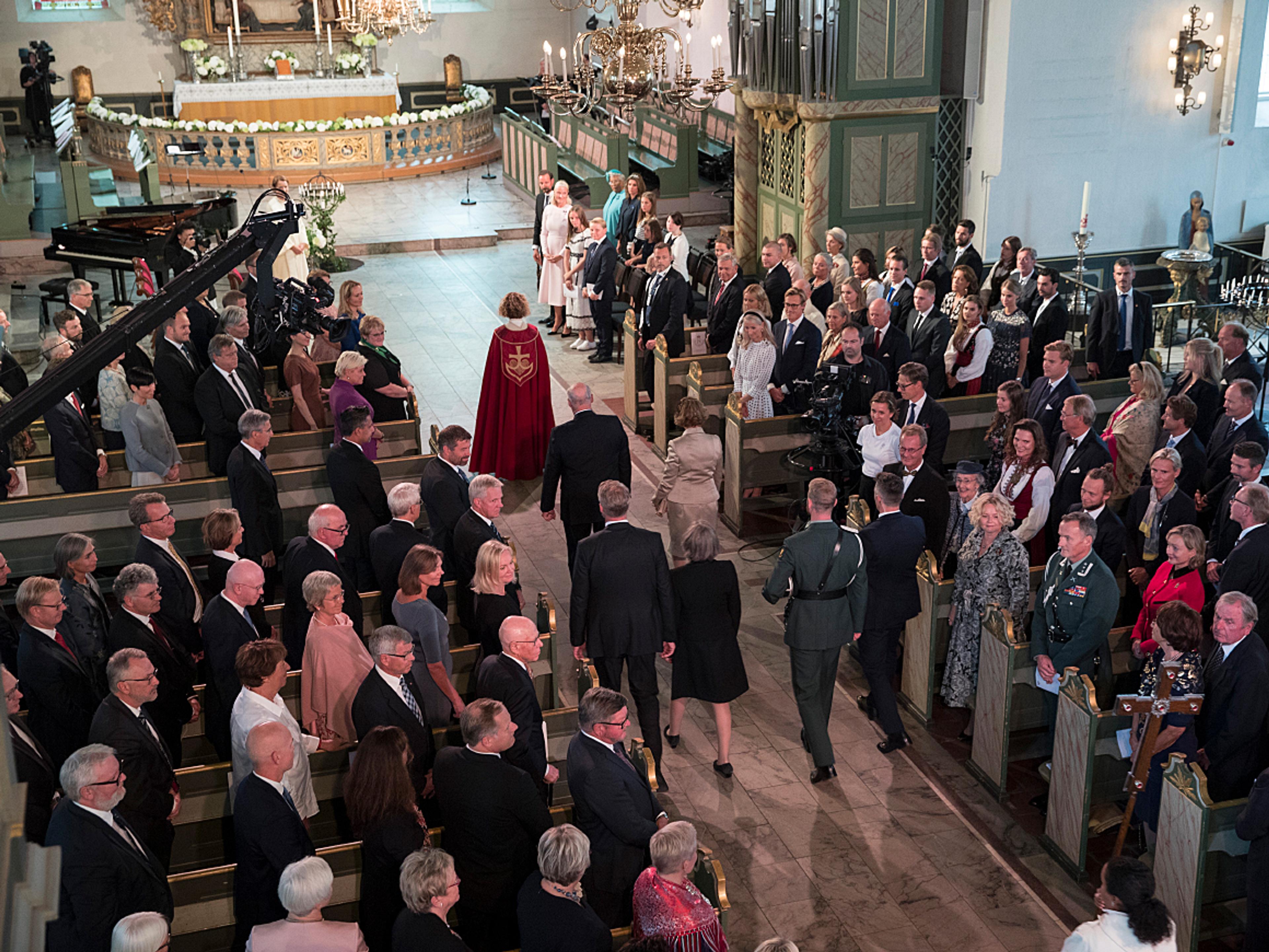 En fullsatt domkirke ventet Kong Harald og Dronning Sonja. Familie og venner var selvsagt til stede. Det samme var statsministeren, medlemmer av regjeringen og andre representanter for det offisielle Norge. Kongeparet hadde også invitert 200 borgere, i tillegg til ansatte ved Det kongelige hoff.