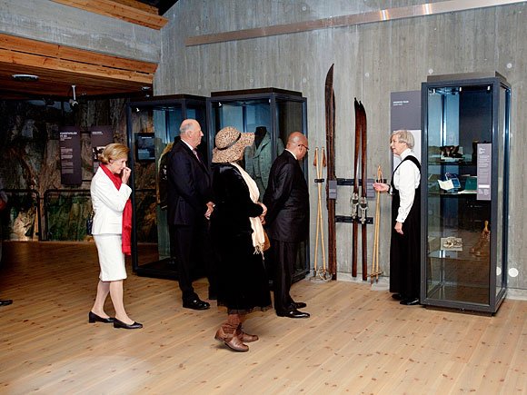 I ettermiddag besøkte Kongeparet og Presidentparet Holmenkollanlegget saman. I går var det Fridtjof Nansen, nobelprisvinnaren, som møtte følgjet på Nobels fredssenter. I dag var det polfararen Nansen som stod i sentrum. Skimuseet ligg inne i fjellet under Holmenkollbakken og har 4000 års skihistorie å vise fram. Ein viktig del er polarutstillingane, som blant anna viser dei viktigaste ferdene til Fridtjof Nansen og Roald Amundsen.