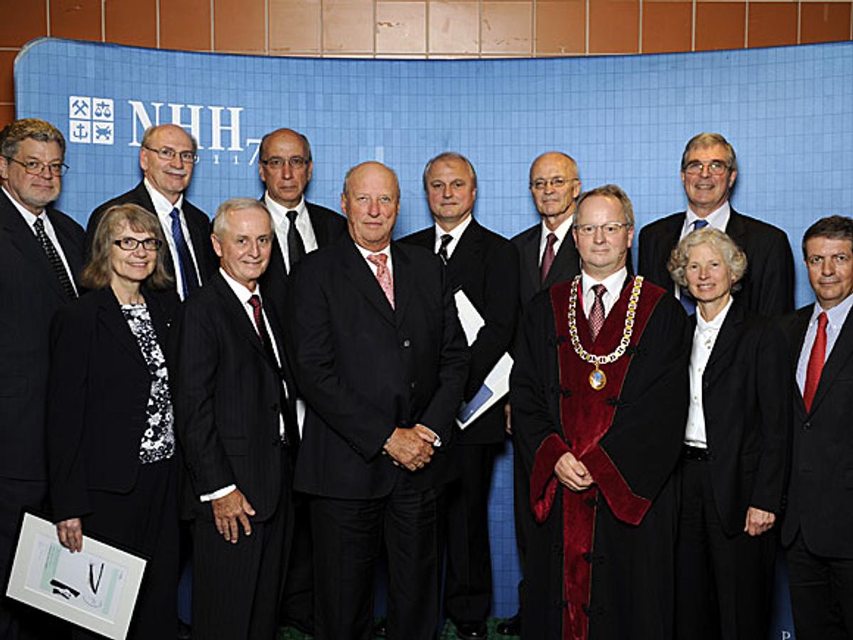 Hans Majestet Kong Harald var til stede da Norges Handelshøyskole i Bergen (NHH) feiret sitt 75-årsjubileum med festmøte onsdag. Ti nye æresdoktorer ble utnevnt på jubileumsdagen.