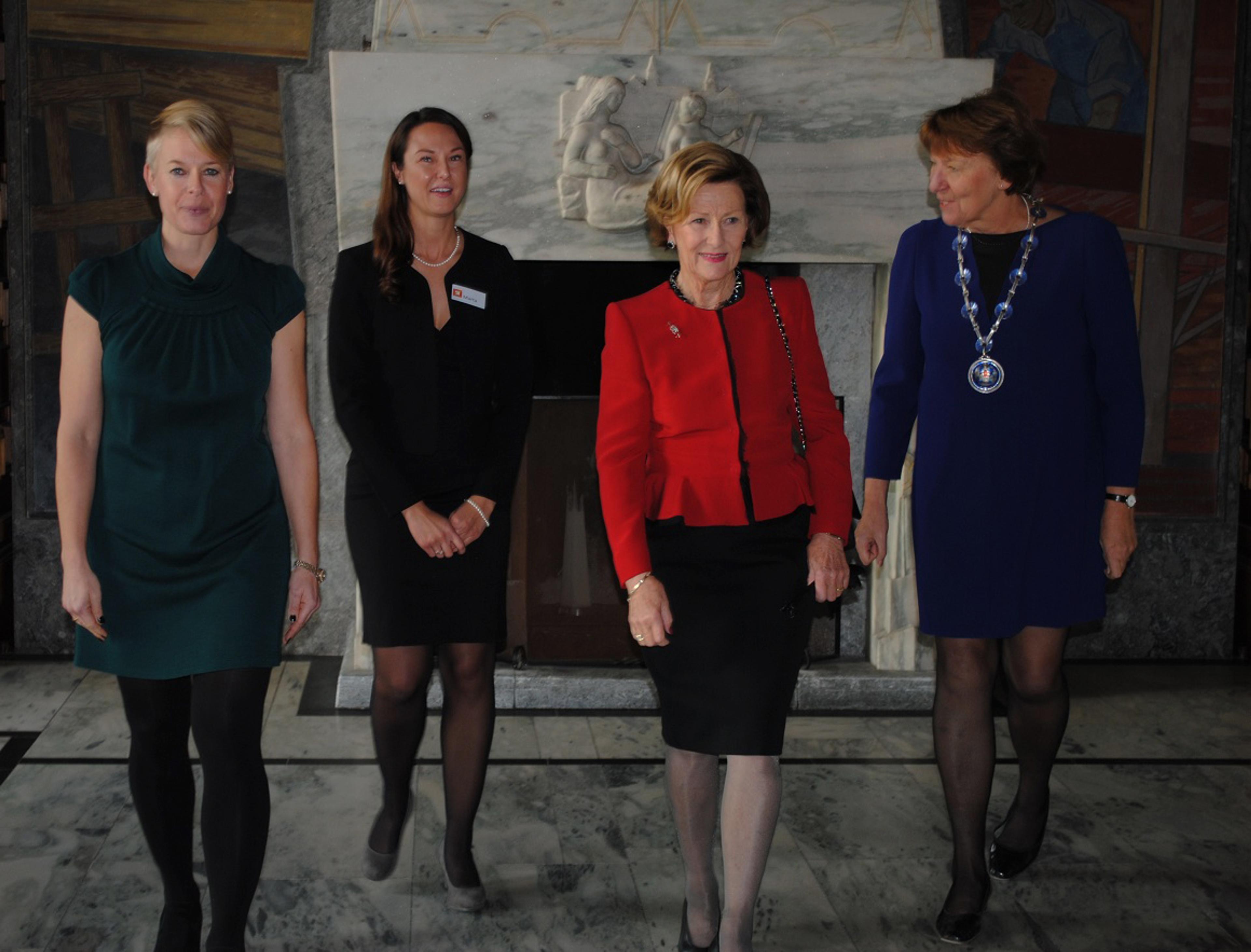 Dronningen fikk møte noen av brukerne og overvar festmøtet i rådhuset sammen med ordfører Marianne Borgen, barne- og likestillingsminister Solveig Horne og helse- og omsorgsminister Bent Høie.
