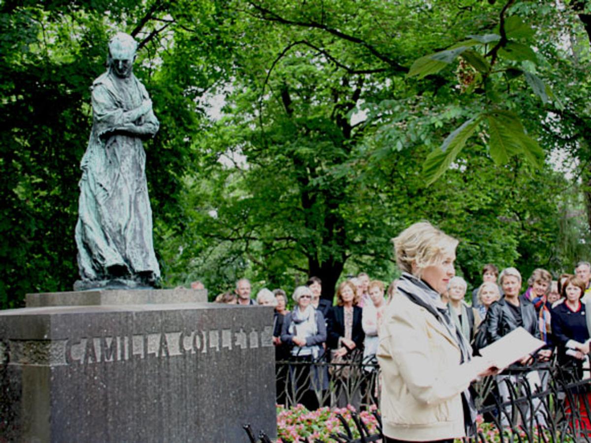 Biskop Solveig Fiske talte, og skuespiller Hildegunn Risse leste diktet «Camilla Collett» skrevet av lyrikeren Åse Marie Nesse og inspirert av nettopp denne statuen i parken.