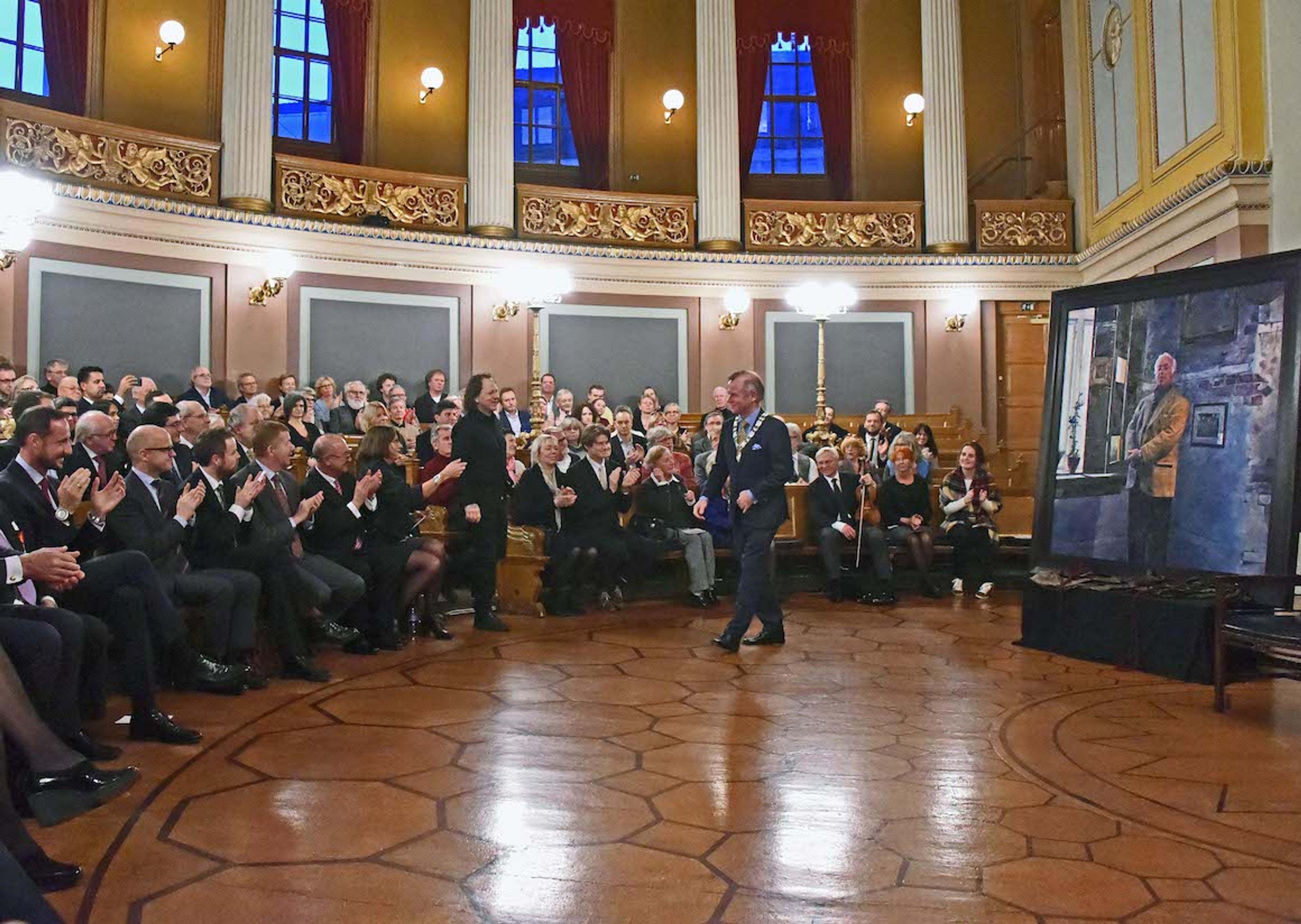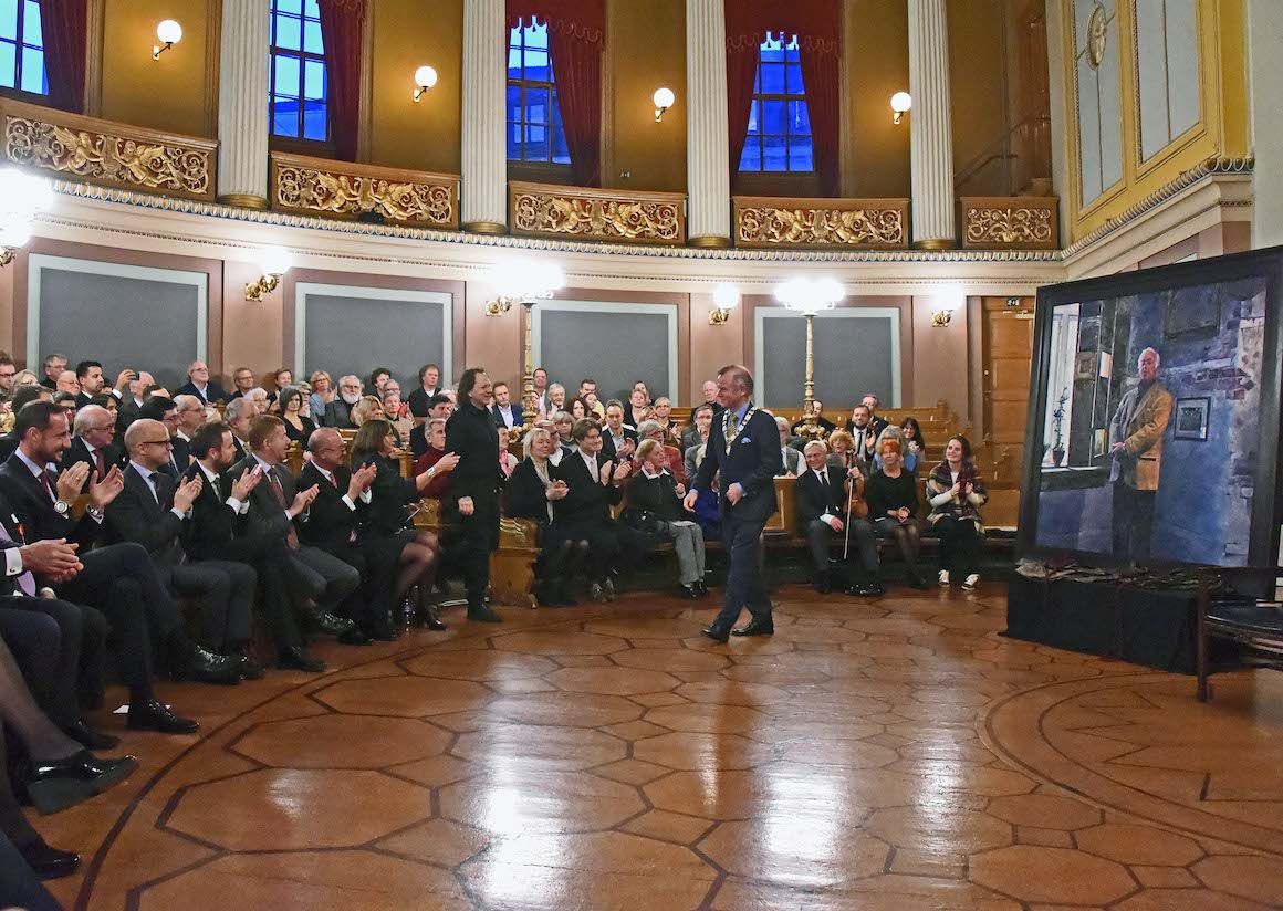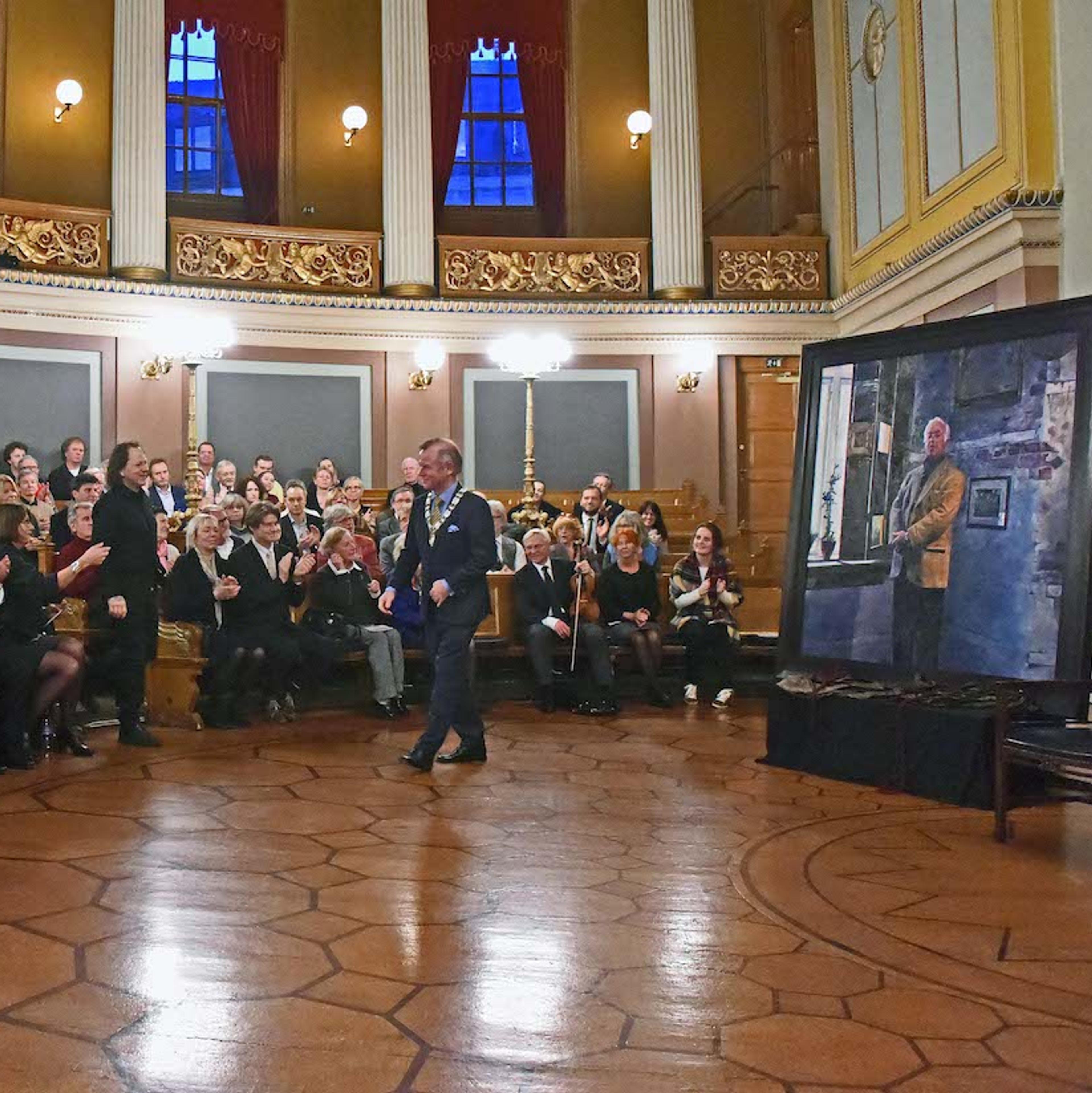 Steinmann ble tildelt Kongens Fortjenstmedalje i Gull i 2012. I dag ble han hedret med et maleri.