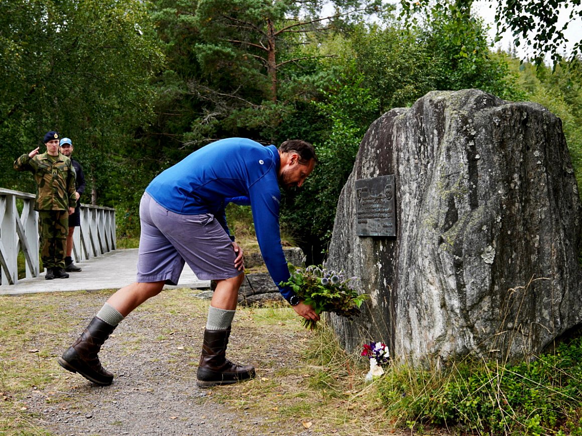 Kronprins Haakon la ned blomster ved minnesteinen i dag.